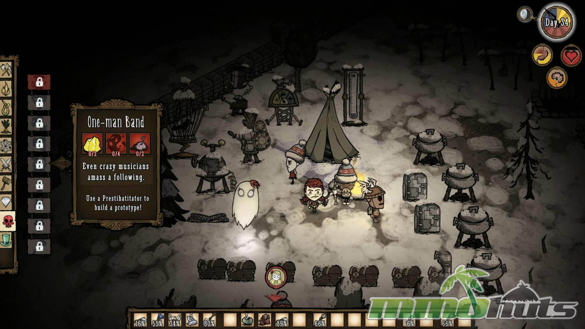 Don’t Starve Together’s soundtrack and effects are a major part of why the game feels so tense without relying on jump scares. The music tends to hover between playful and unsettling, nudging you to stay alert even during routine tasks. Character “voices” represented through instruments keep dialogue flavorful while fitting the world’s surreal tone, and environmental sounds provide useful signals about time of day and nearby threats.