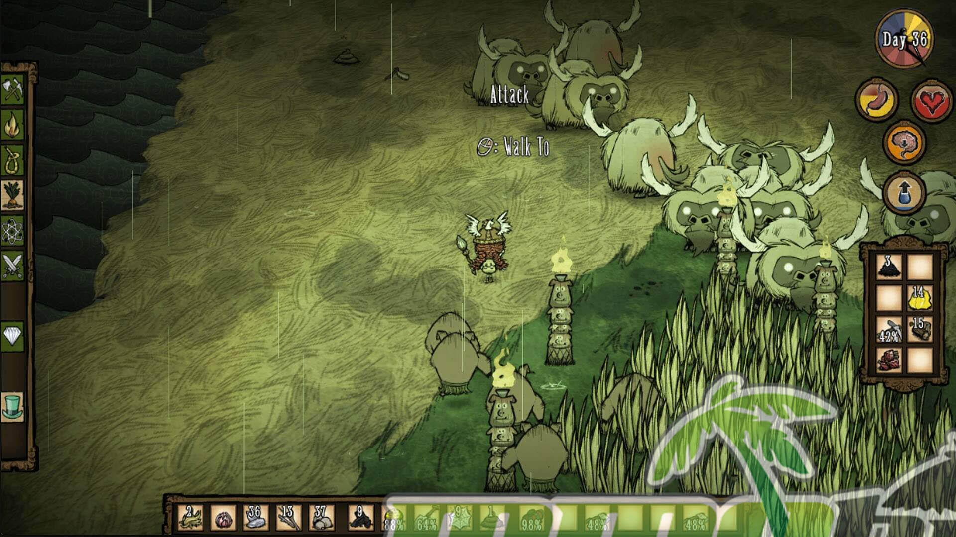 Fight, forage, and improvise your way through Klei Entertainment’s darkly playful survival sandbox, presented with 2D characters set against a stylized 3D world. Staying alive means juggling three constant pressures, your hunger, your health, and your sanity, while the wilderness throws everything from the elements to hostile creatures at you.