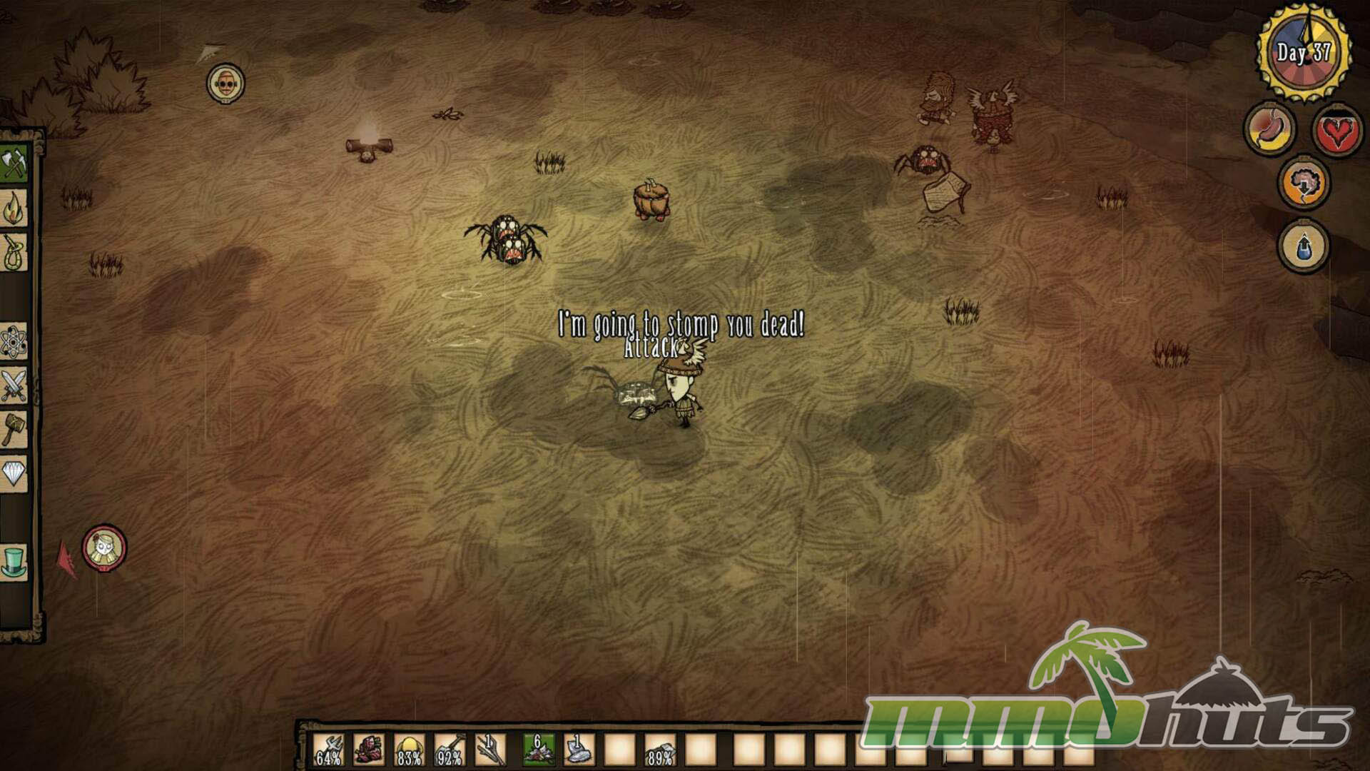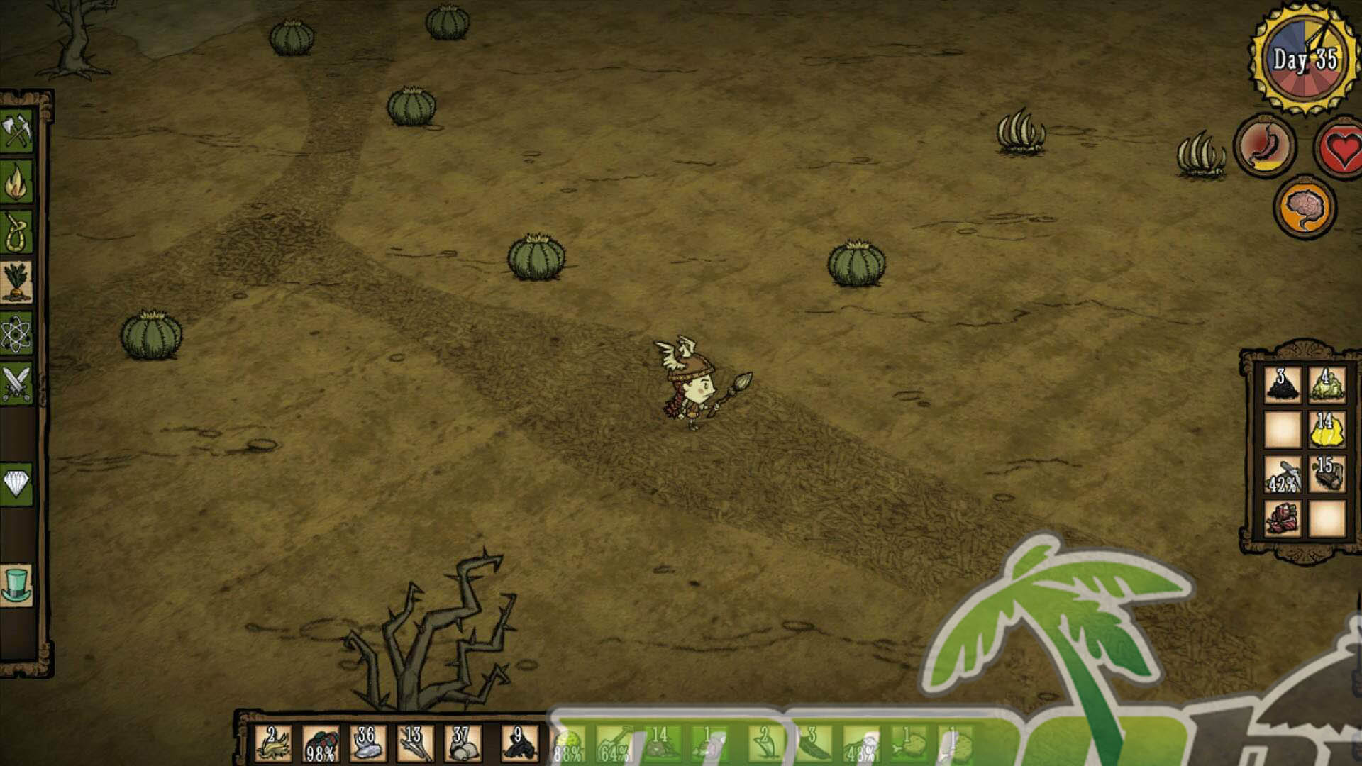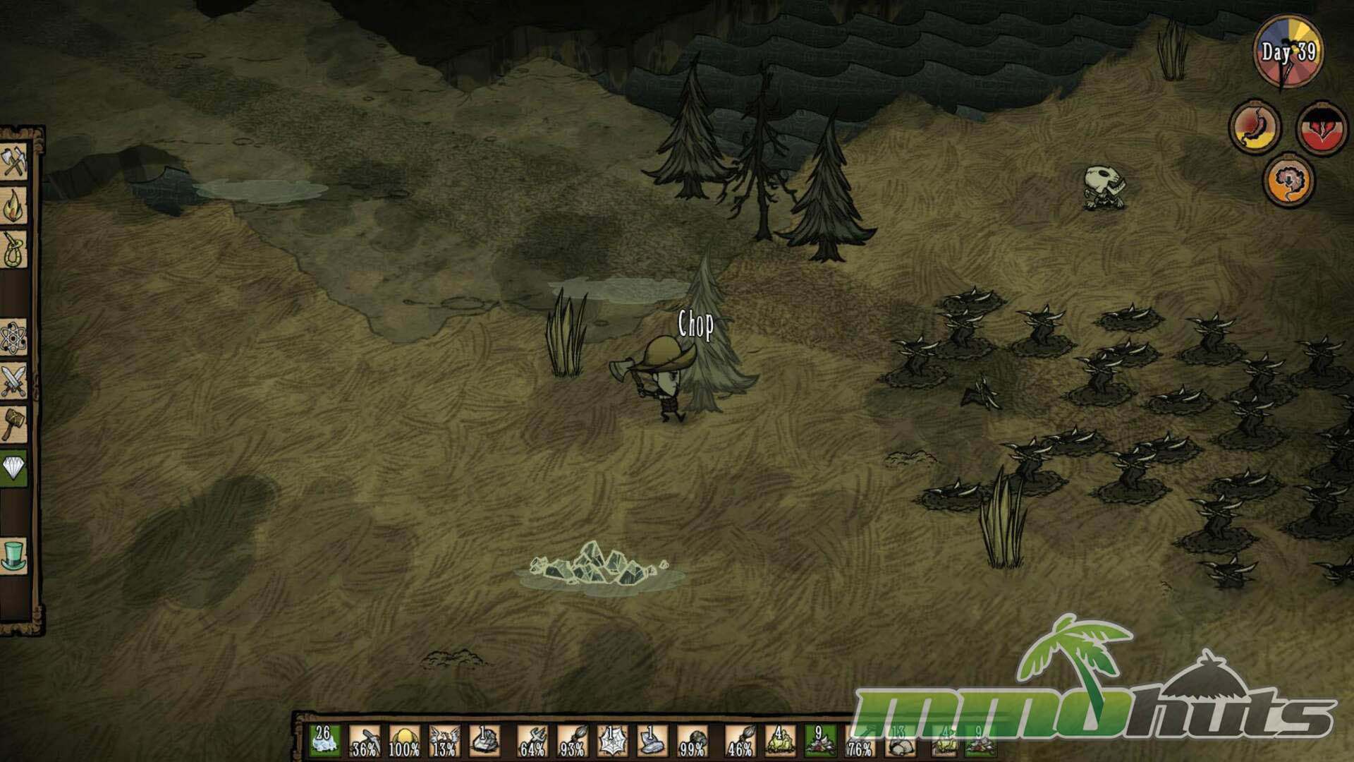 Moment to moment, Don’t Starve Together is defined by pressure. There is no gentle tutorial, no quest chain to follow, and very little explanation beyond what you can infer through experimentation. Your character is tracked by three core meters, hunger, health, and sanity, and every decision is connected to at least one of them. Staying fed keeps you alive, staying healthy keeps you from dying to the next surprise, and staying sane prevents the game from compounding your problems when you can least afford it.