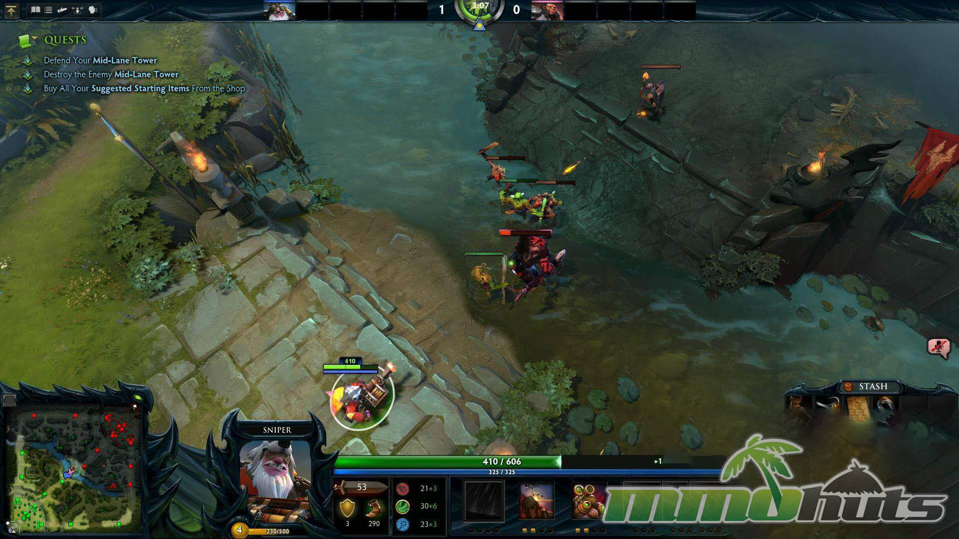 Every standard Dota 2 match is a five‑versus‑five battle on a mirrored three‑lane map. One side defends the Radiant base, the other protects the Dire. Each player selects a single hero, and once the horn sounds, teams spread out across lanes, neutral jungle camps, and the river to gain experience and gold. Levels unlock and upgrade abilities, while gold is spent on items purchased from shops around the map.