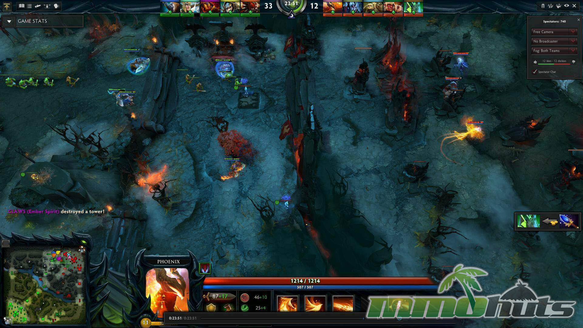 Matches tend to be slower paced in the early game and more explosive later. The first 10 to 15 minutes are often about securing lanes and building a resource lead, while midgame revolves around smoke ganks, tower pushes, and contesting Roshan, the powerful neutral boss that provides the Aegis of the Immortal. Late game teamfights become chaotic, with multiple buybacks, big ultimate abilities, and item actives deciding fights in seconds. Even a team behind by a large margin can sometimes turn the game around with a well‑executed defense or a single mistake from the leading side.