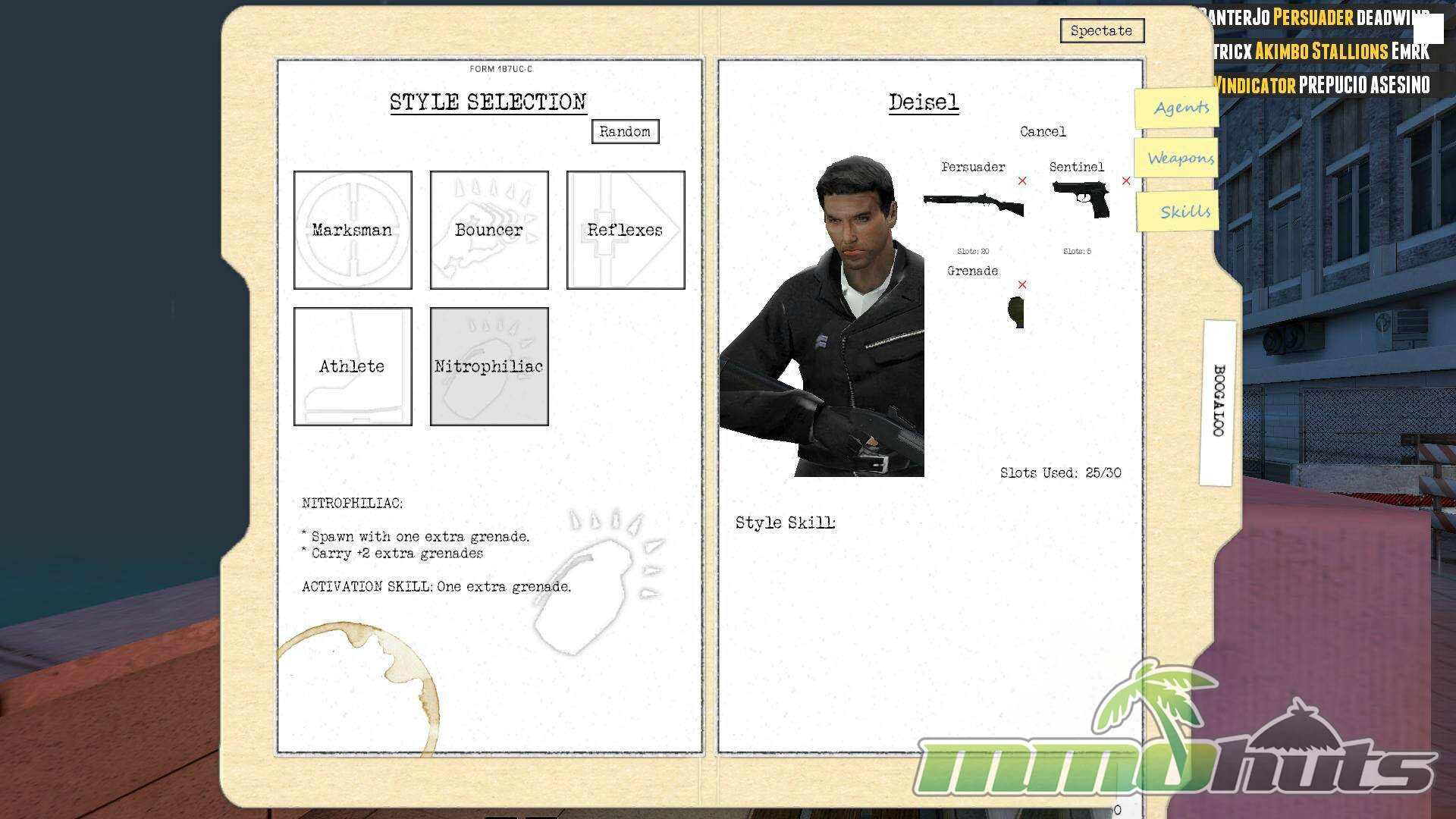 Before a match you pick an ability such as Marksman, BounceMan, Reflexes, Athlete, or Nitrophiliac. These modifiers are small but meaningful, and the right pairing can push you toward a specific role even in a free-for-all. Marksman is the obvious choice if you want cleaner recoil control and more reliable mid-range shots, while Nitrophiliac leans into explosives by boosting your grenade options and carrying capacity.