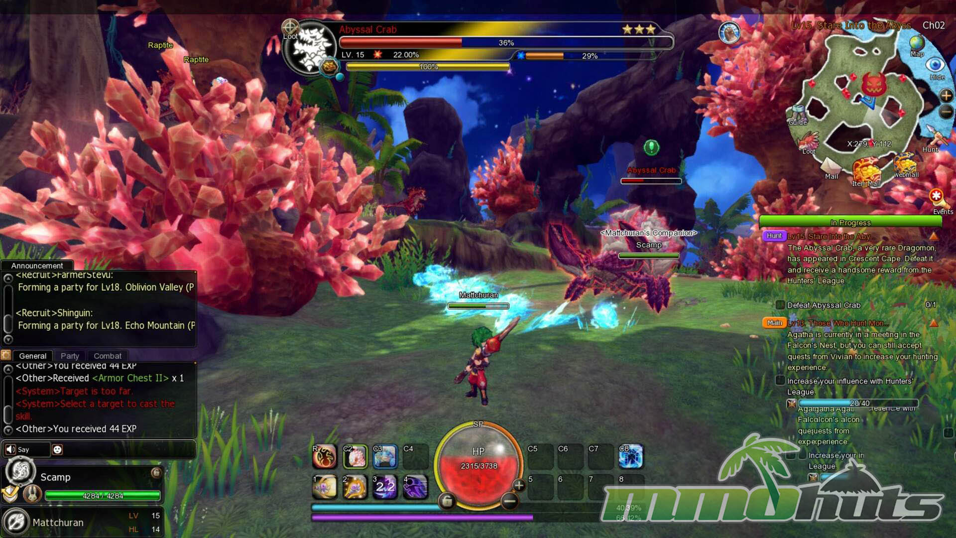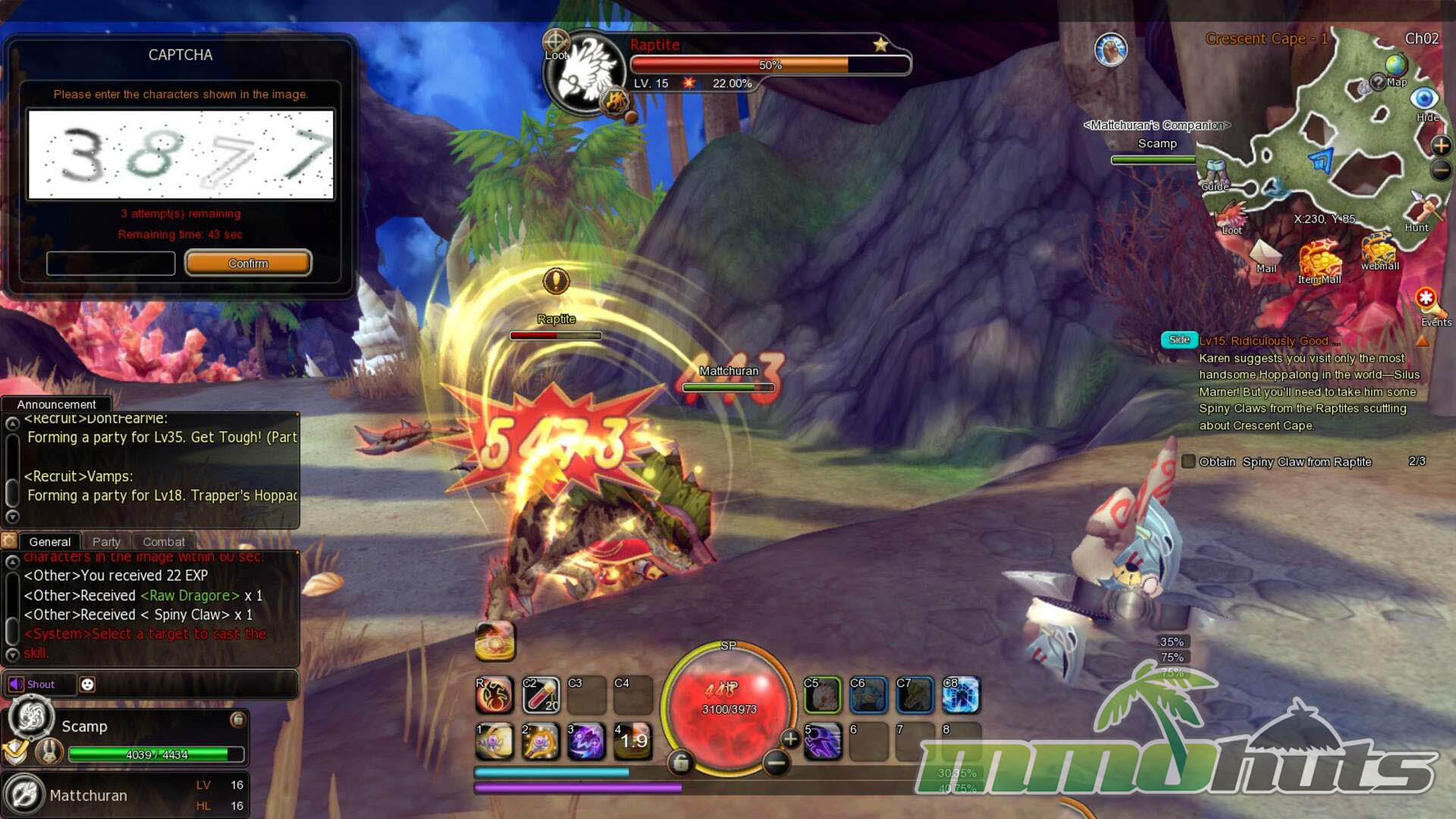 Dragomon Hunter advertises action combat, but it is more accurate to say it sits between action and tab targeting. You still select a target and activate skills from a hotbar, and if you are in range, attacks connect in a way that will feel familiar to tab-target MMO players. The game does not consistently deliver the “whiff if you miss” immediacy that players expect from full action systems.