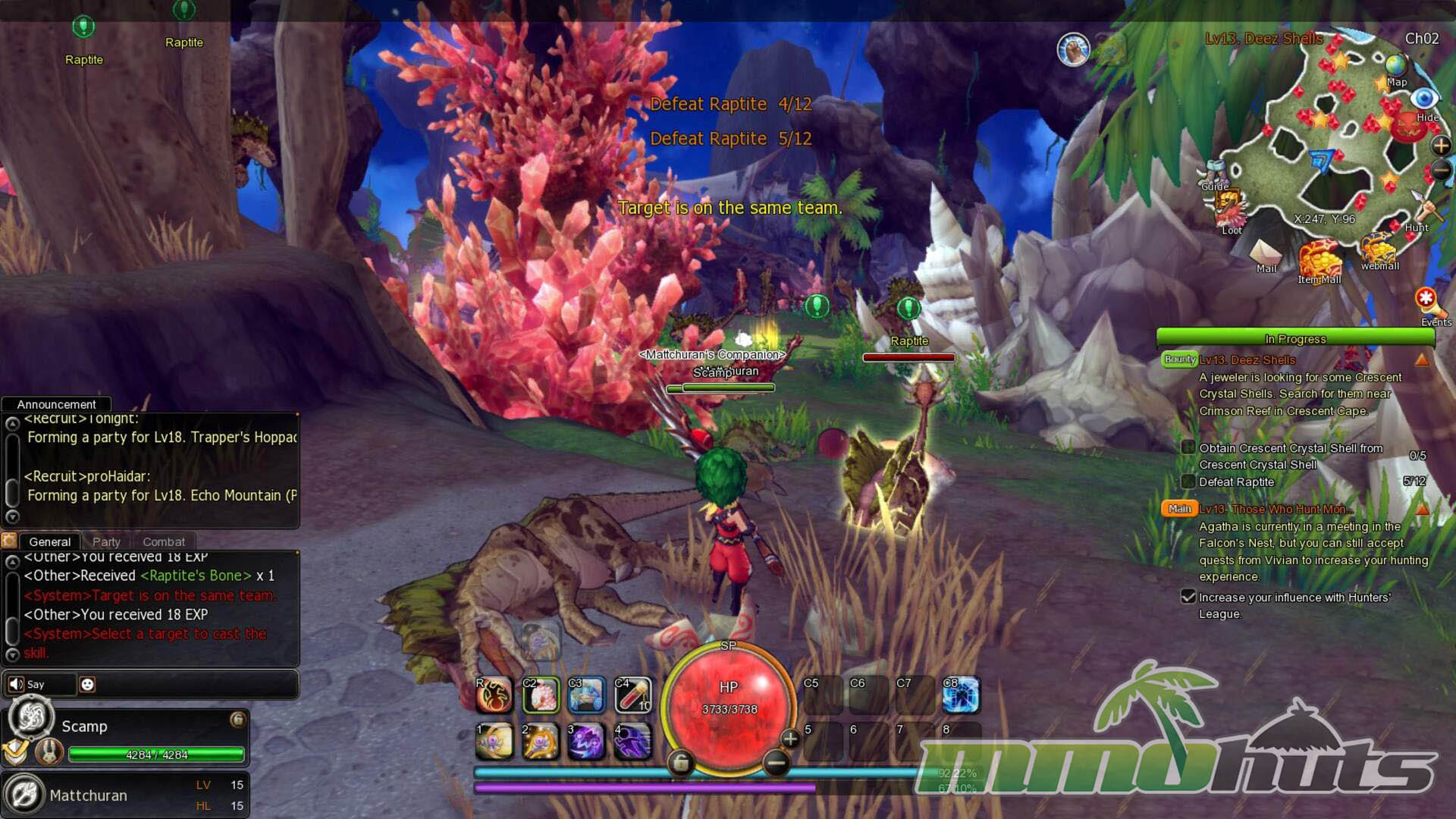 Dragomon Hunter advertises action combat, but it is more accurate to say it sits between action and tab targeting. You still select a target and activate skills from a hotbar, and if you are in range, attacks connect in a way that will feel familiar to tab-target MMO players. The game does not consistently deliver the “whiff if you miss” immediacy that players expect from full action systems.