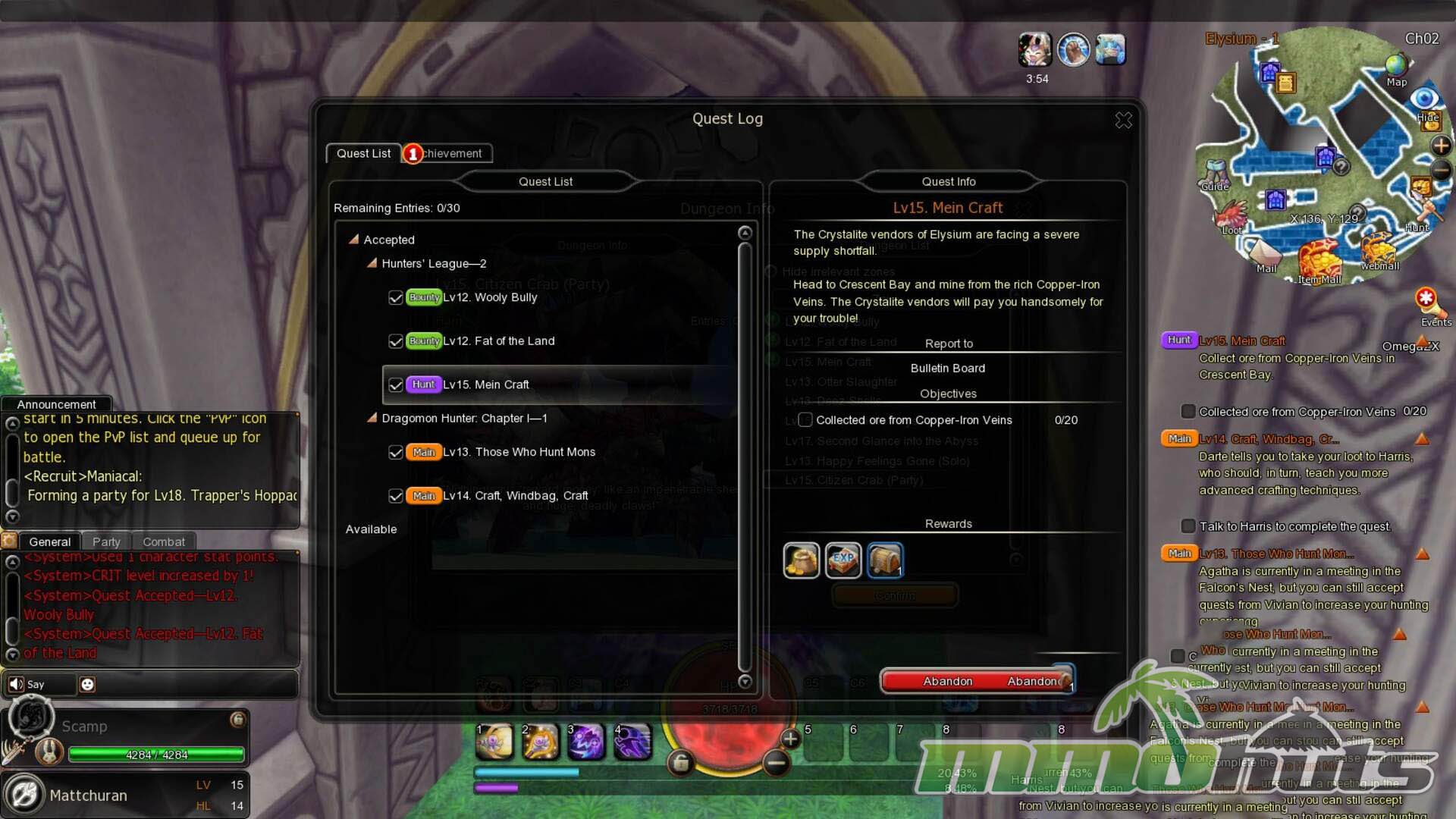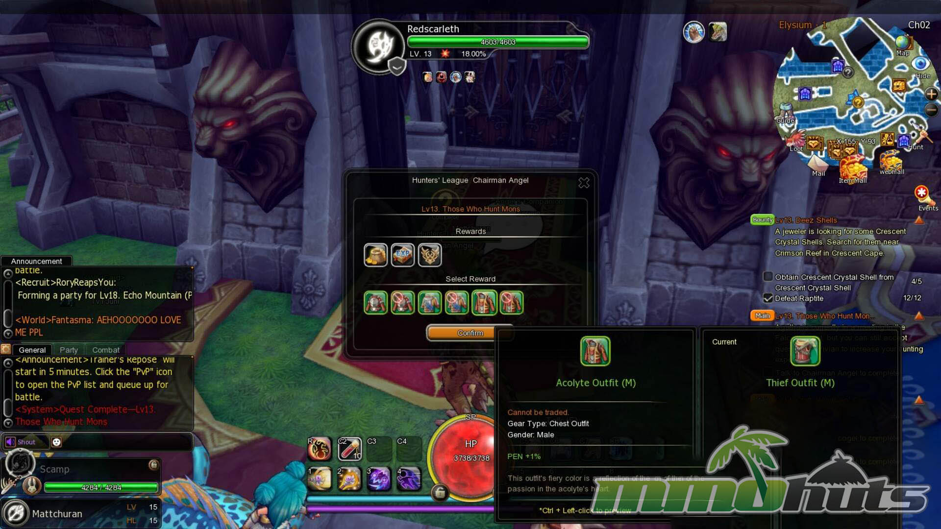 The game is built around Elysium as a central hub where you manage vendors, upgrades, and general housekeeping. From there, portals send you into mission spaces tied to quests, hunts, and guild objectives. Completing an objective frequently leads to an immediate prompt to return to the hub, so the rhythm becomes a loop of portal in, clear a small map, then warp back.