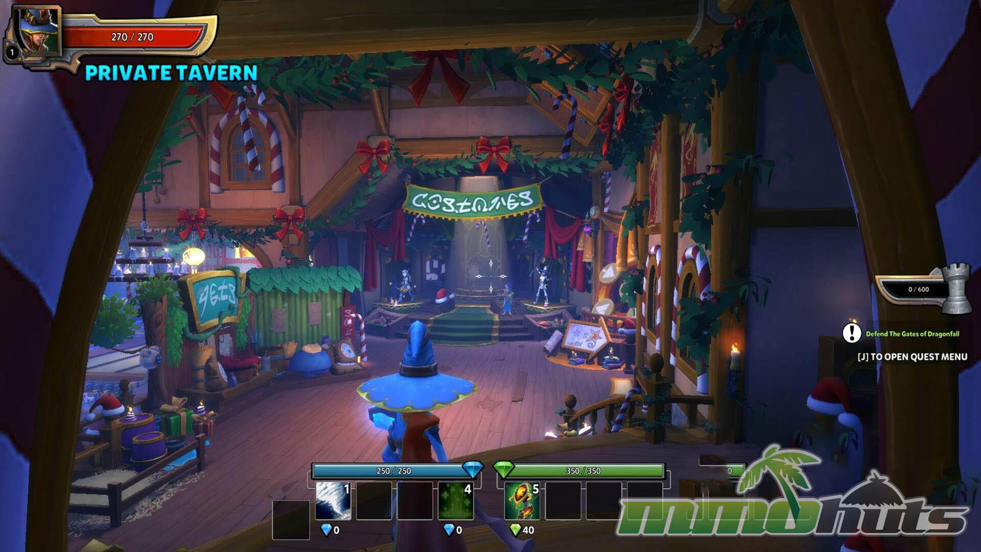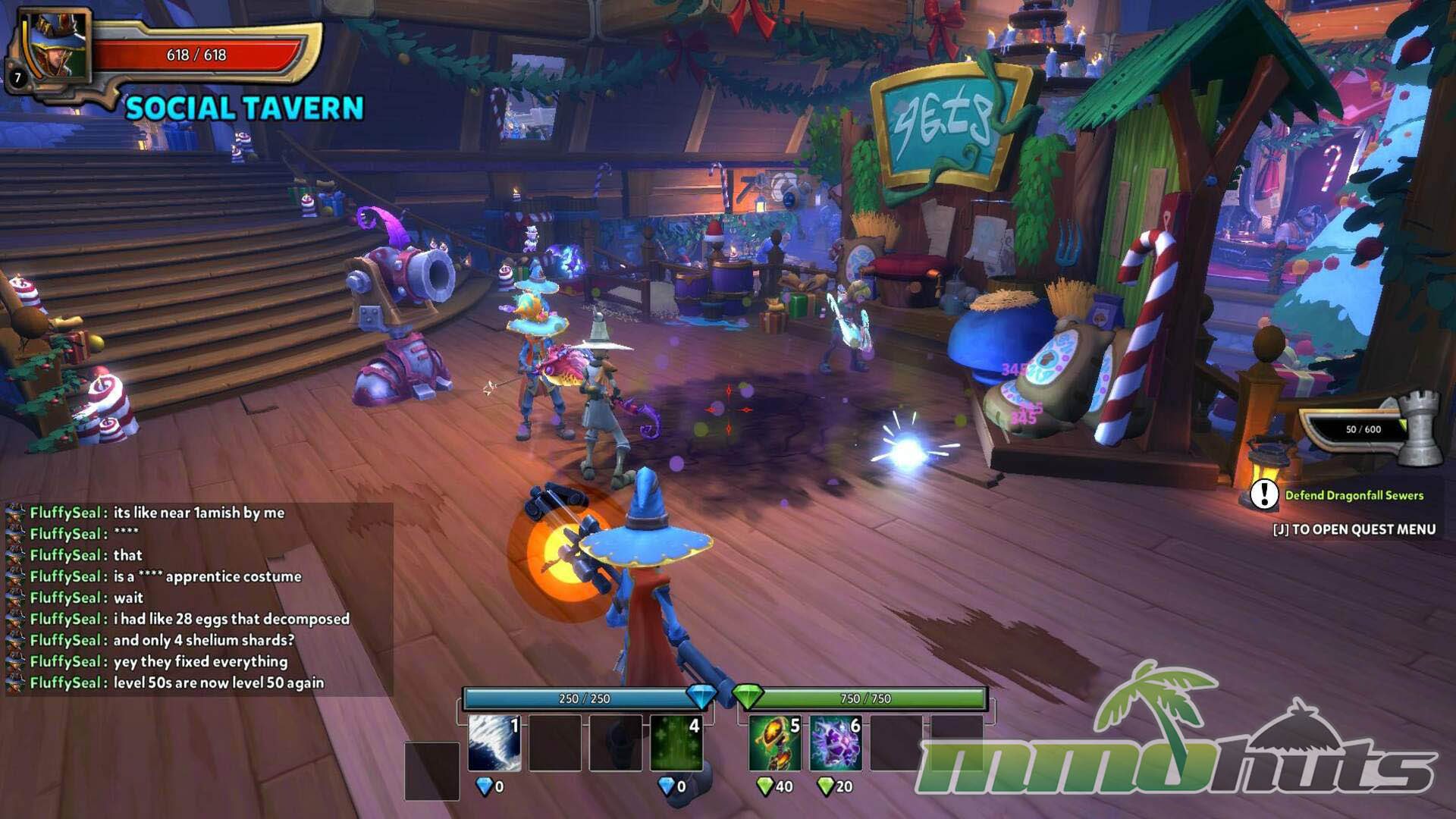 Outside of missions, Dungeon Defenders 2 leans into loot-driven progression and collection systems. A central tavern hub helps players group up, manage equipment, and interact with vendors. On top of that, you will run into random gear drops, customization options, cosmetic outfits, missions and challenges, pets, and other supporting systems that feed back into the core defense loop.