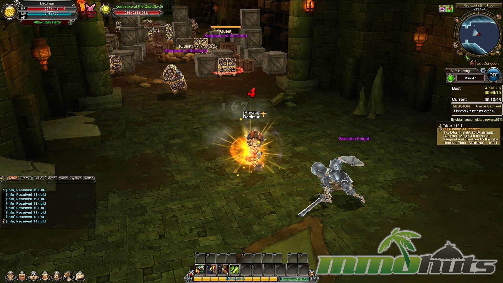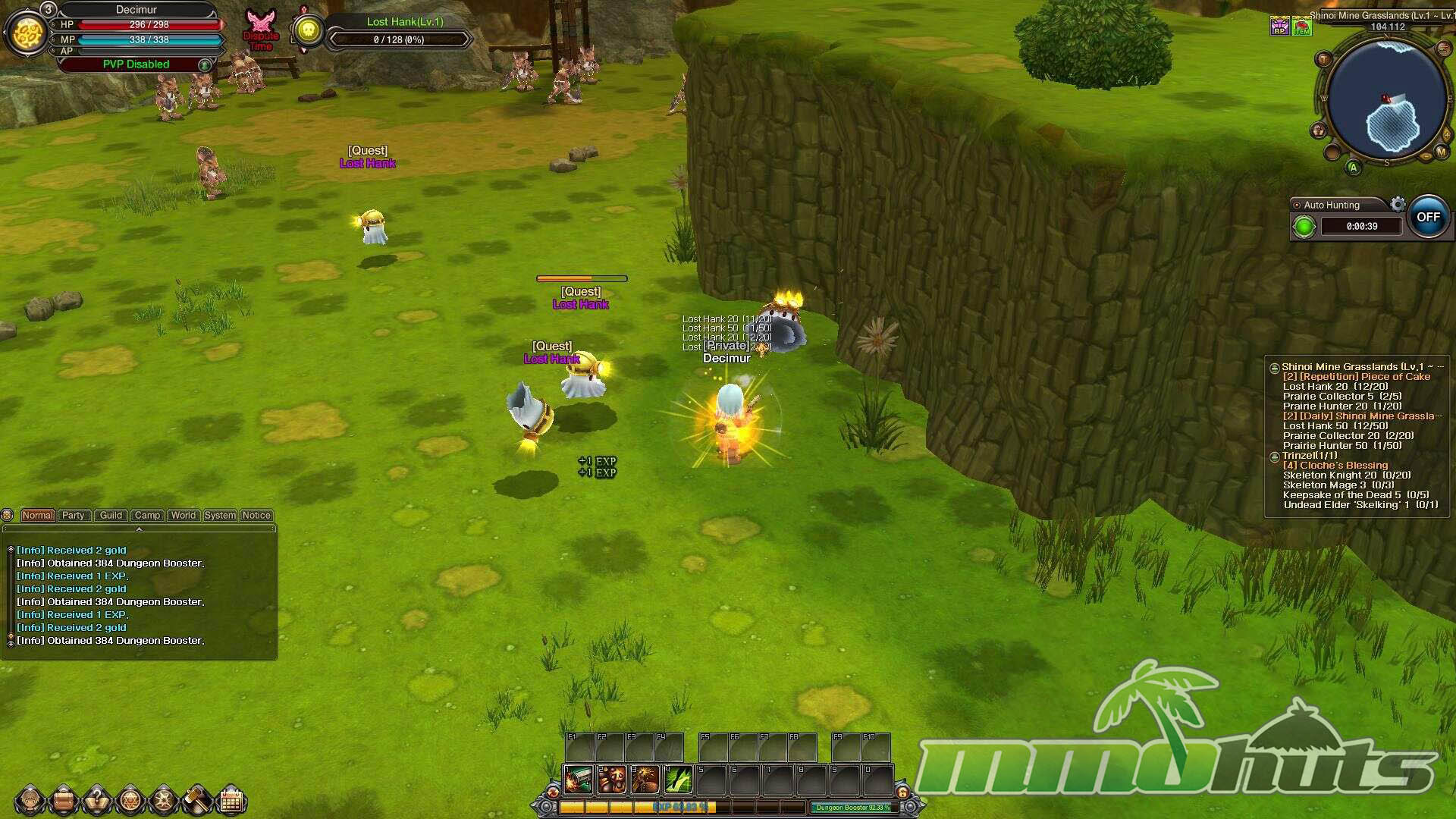 Content-wise, Dungeon Hero leans heavily on instanced dungeons supported by open-field grinding. The dungeon difficulty tiers and time-tracking leaderboards push a speed-clear mindset that can be fun for players who enjoy optimizing runs, tightening rotations, and improving routes. The daily time board buff is a small but meaningful incentive, since it nudges competitive players to log in and chase placements. Open fields fill the gaps between dungeon sessions with repeatable quests and farming, and the presence of an auto AFK tool signals that the game expects long grind sessions as part of progression.