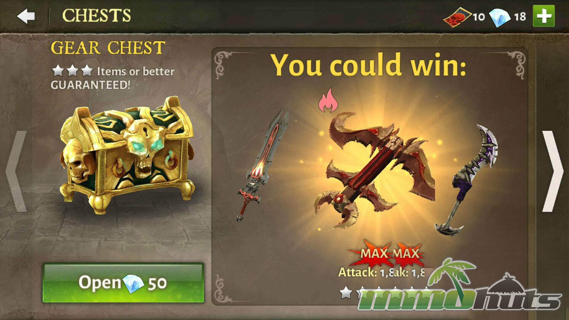 Dungeon Hunter 5 reflects Gameloft’s freemium era, and the monetization is hard to ignore. The premium currency, gems, can be used for practical advantages such as refilling energy, increasing inventory space, and opening chests that contain randomized equipment in the 3 to 5 star range. Those chests function as a gamble, and results often skew toward lower-tier rewards, which can be frustrating when you are stuck behind a difficulty wall.