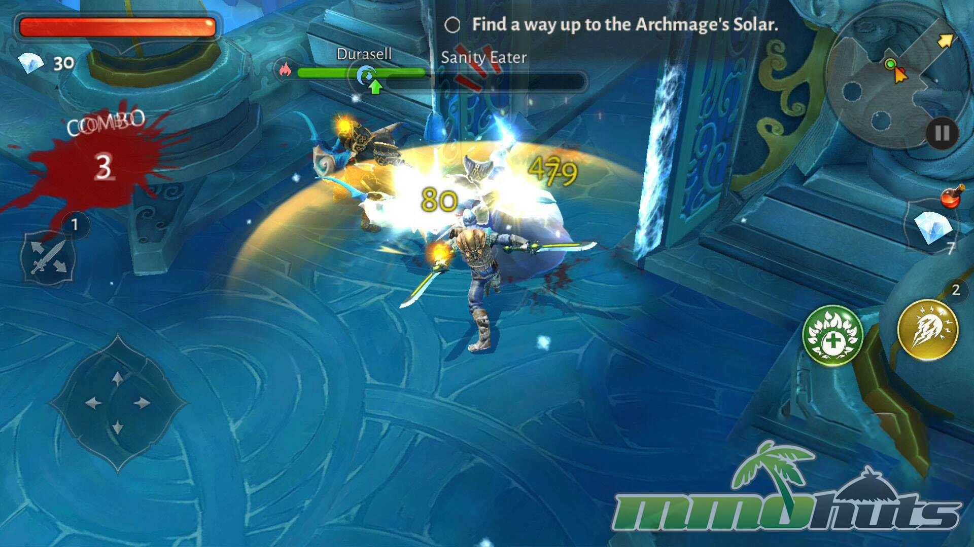 At its heart, Dungeon Hunter 5 is mission-based. The campaign unfolds across instanced stages on a world map that expands into five realms. Controls are typical for the genre on mobile, a virtual joystick for movement and dedicated buttons for attacking, dodging, and activating skills. Combat is responsive and built around quick engagements, short cooldowns, and repositioning to avoid damage.
