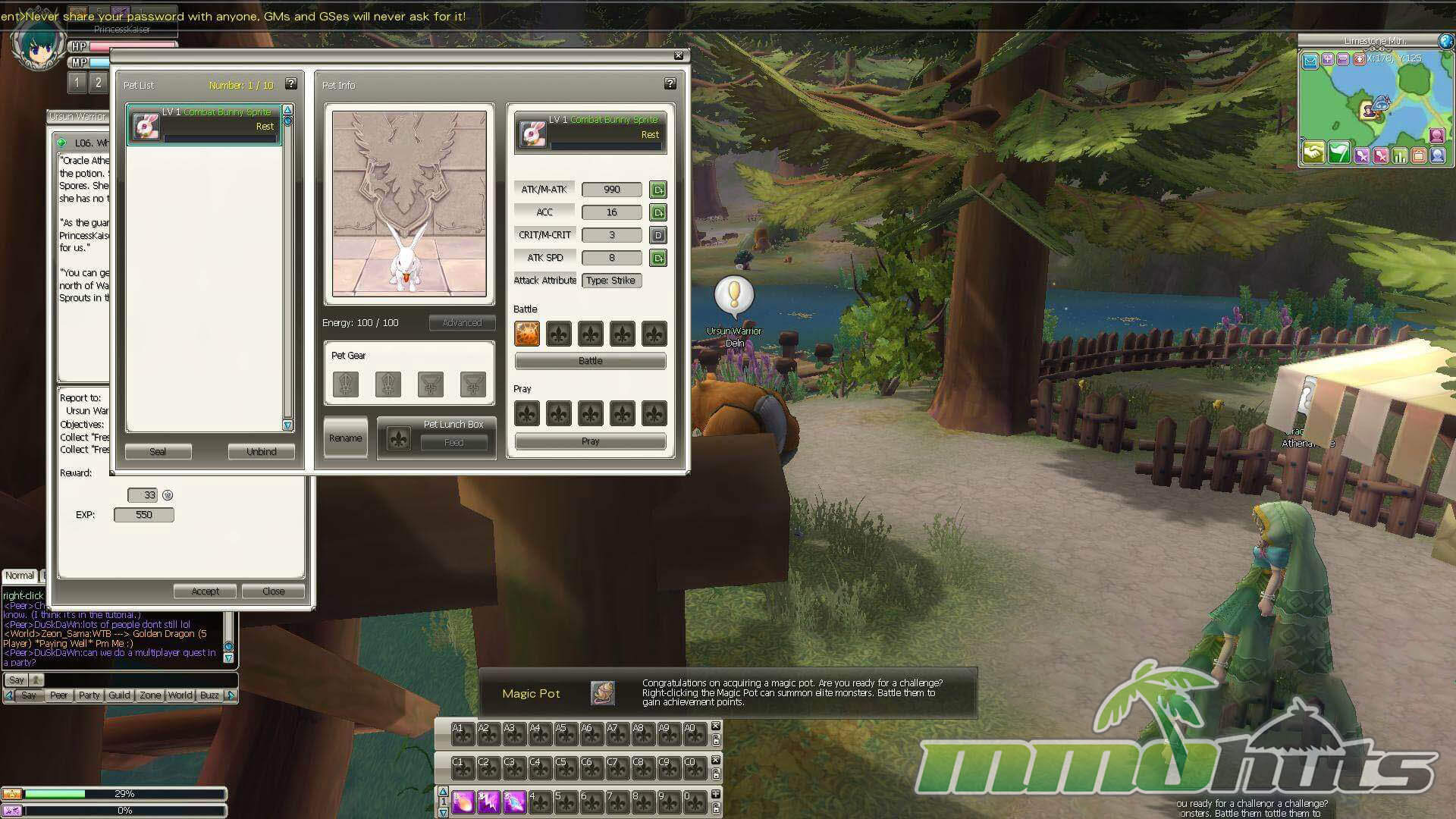 The tutorial is integrated in a way that does not feel overly separated from the main game. You are guided between NPCs and basic mechanics, but navigation is streamlined, clicking quest objectives can move you toward the right characters and targets, which reduces downtime. Once you are out in the wider world, the overall structure becomes familiar: quest-driven zones, steady experience gain, and a generally linear path from hub to hub. Convenience features (like quickly locating quest monsters through the tracker) keep the pace moving, and at Level 25, pet companions become an option, giving solo players a bit more support or damage depending on how they train them.