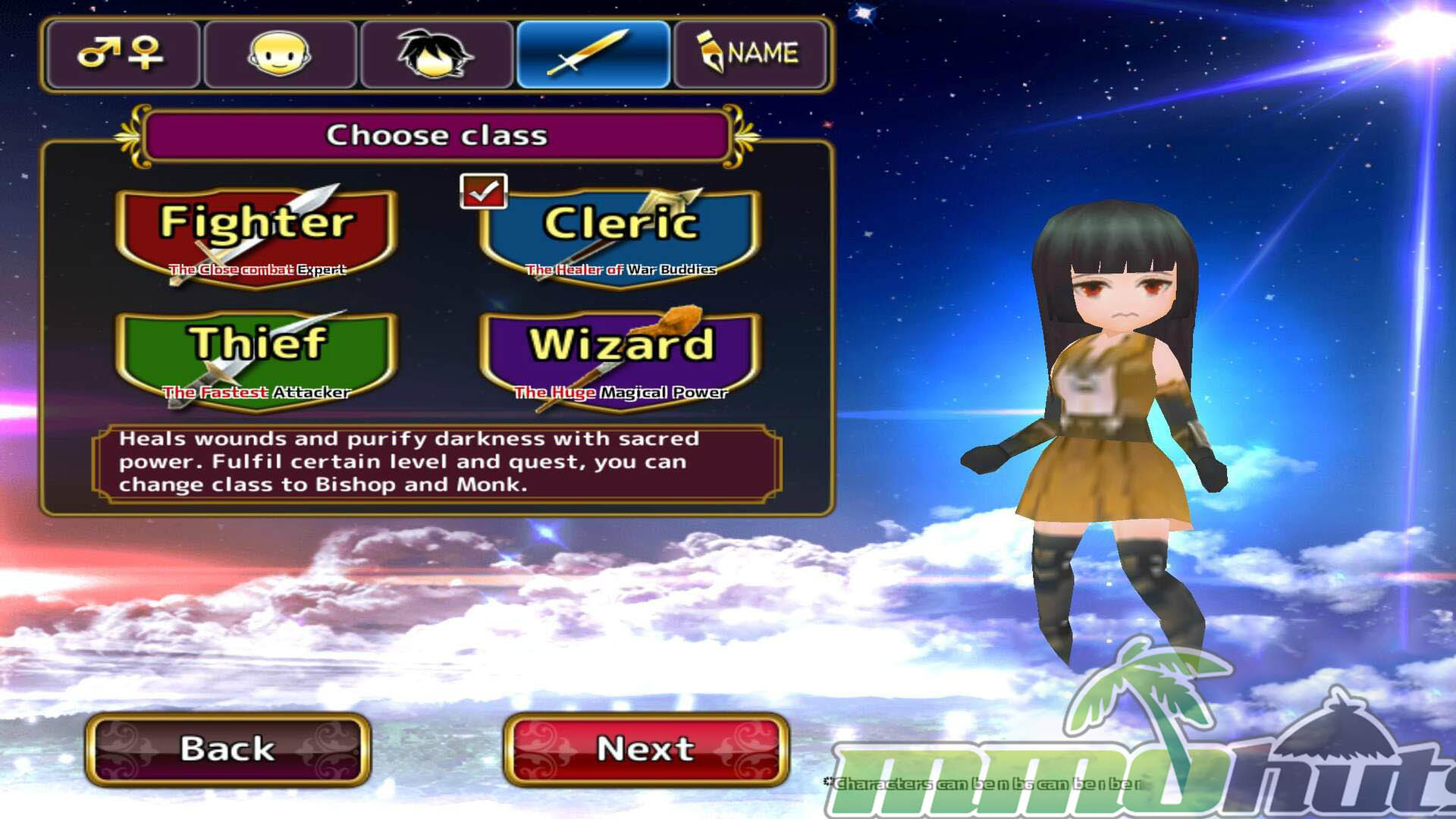 - Class Paths and Specializations – start as Fighter, Thief, Cleric, or Wizard, then transition into advanced jobs (including options like Monk, Bishop, and more) with distinct skill sets.