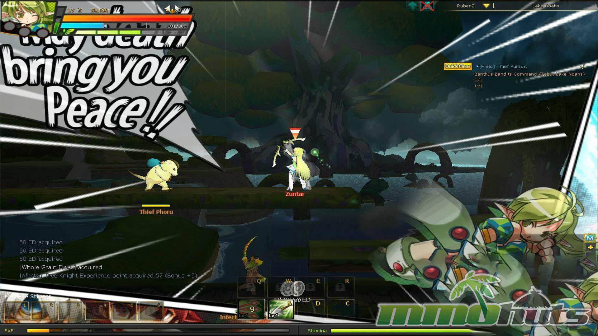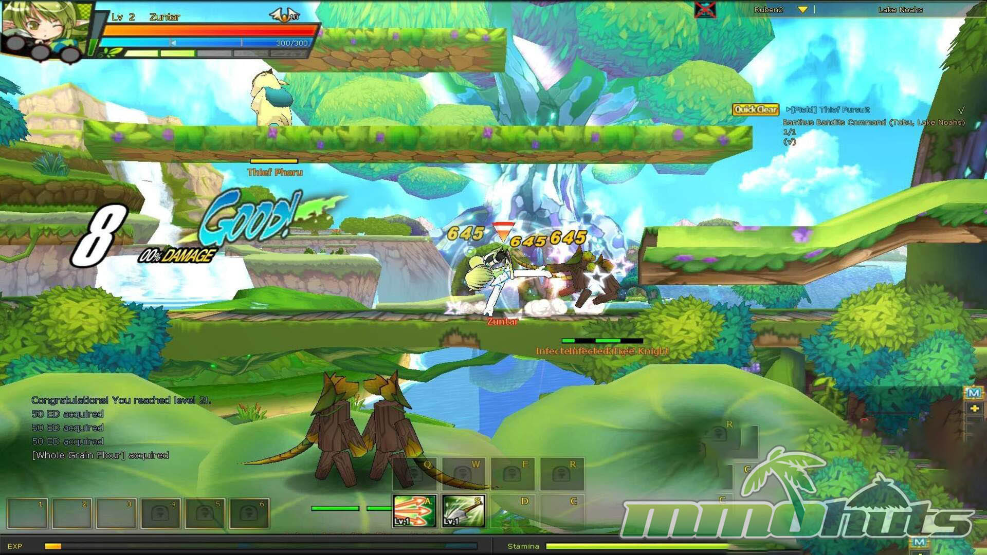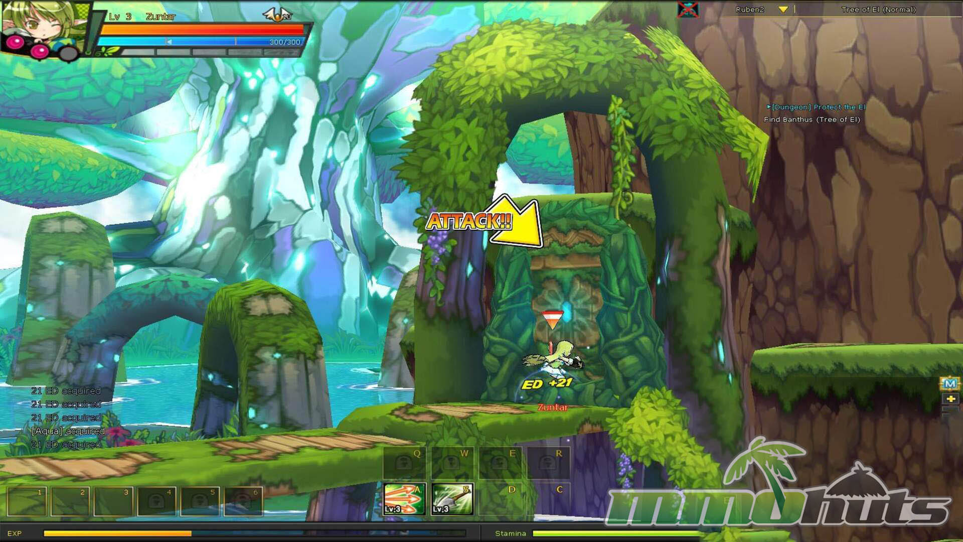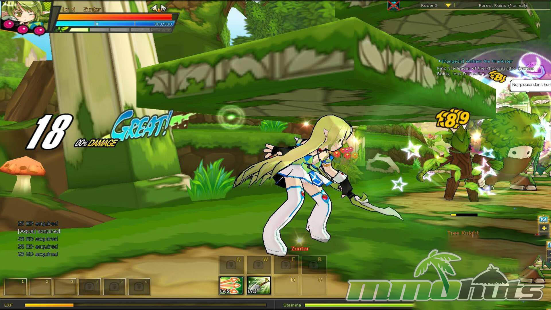 Moment to moment play is where Elsword stands out. Movement is handled with the arrow keys, with Z and X acting as your main attacks, and a cluster of hotkeys (A, S, D, C, Q, W, E) for active skills. That sounds simple, but the system opens up once you start mixing directional inputs into strings, managing positioning, and deciding when to spend MP for crowd-clearing skills versus saving resources for tougher rooms.