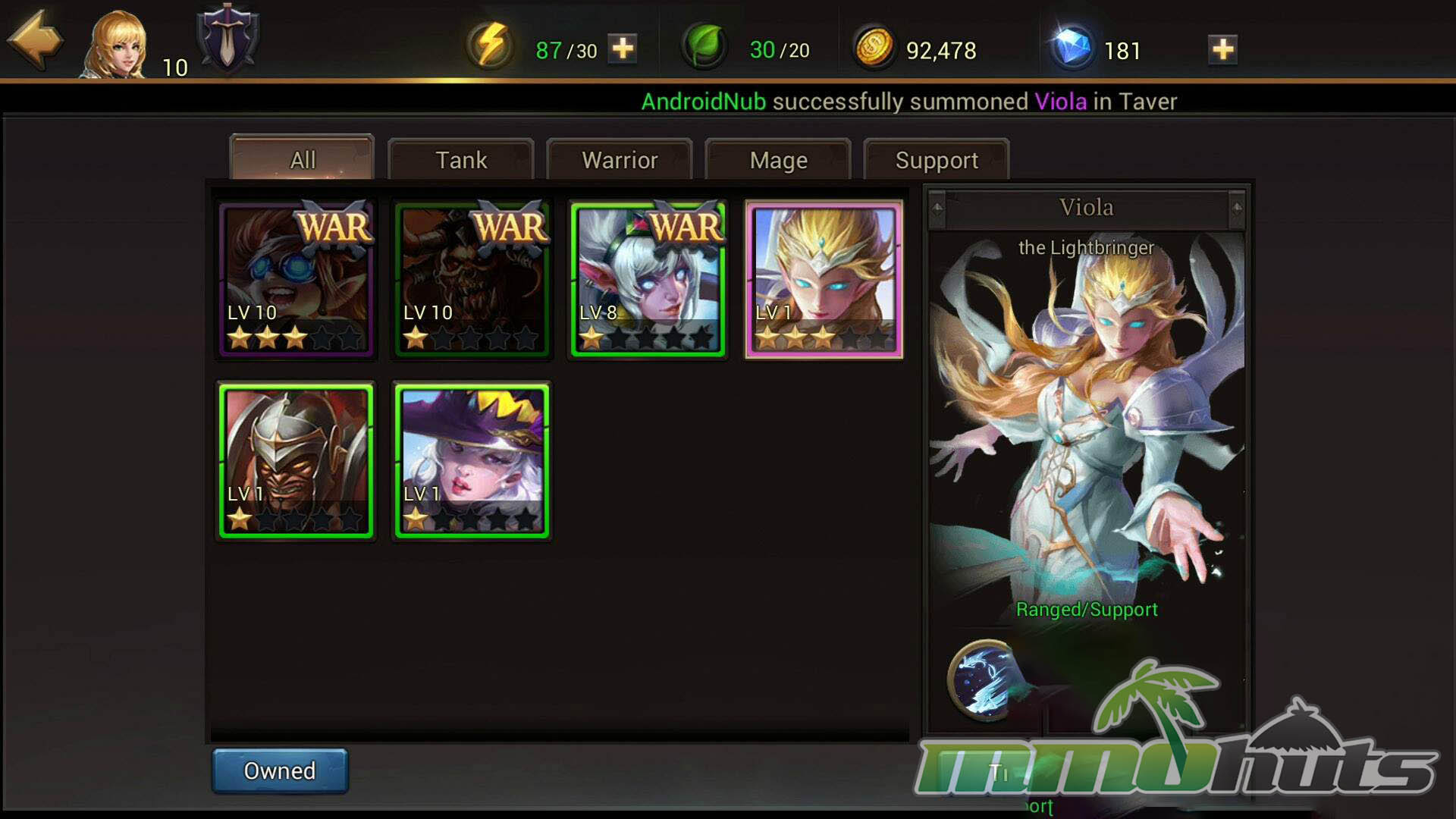 Collection and progression are major pillars. Eternal Arena offers more than 35 Heroes, sorted broadly into Tank, Warrior, Mage, and Support archetypes. Tanks function as durable melee anchors, Warriors are more balanced brawlers, Mages provide ranged damage, and Supports focus on healing or buffs. Even with these labels, kits are varied enough that a Hero’s practical job in combat can differ from what the class name suggests, which keeps team building from feeling too rigid.