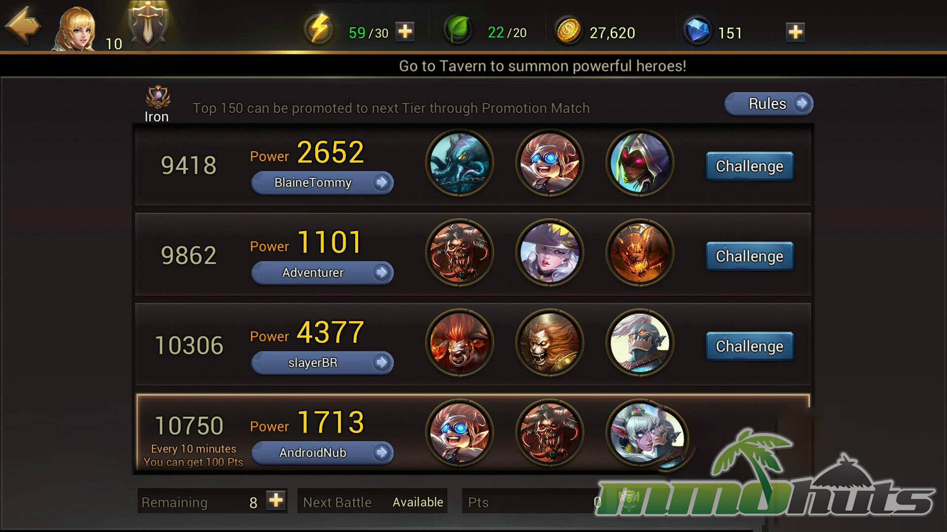 Outside the story stages, Eternal Arena includes a substantial list of additional activities designed to break up routine and provide targeted rewards. Modes such as Goblin Hunt and Monster Hunt are essentially short, repeatable challenges: Goblin Hunt focuses on earning gold by defeating as many goblins as possible within two minutes, while Monster Hunt is a damage check against a boss with rewards based on performance.