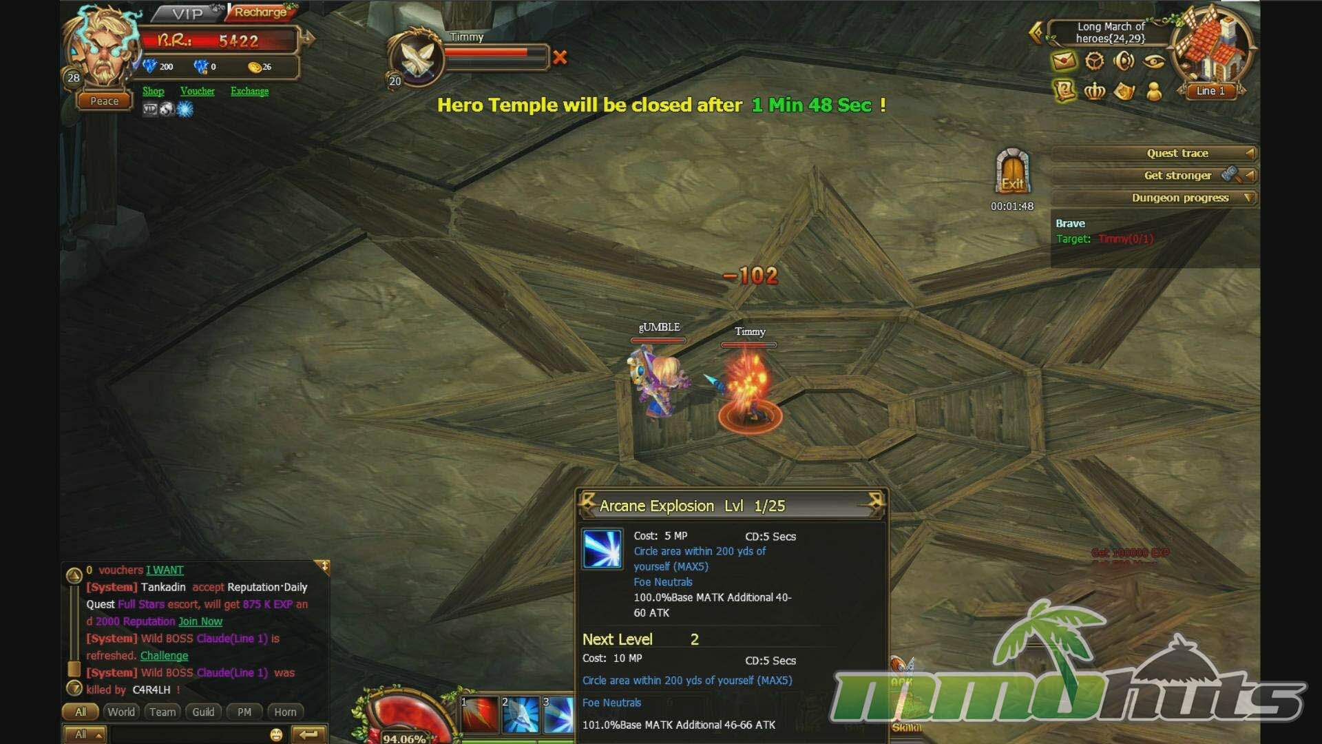 | Publisher: AMZGame Playerbase: Low Type: Browser MMORPG Release Date: November 12, 2015 Shut Down Date: November 25, 2016 Pros: +Bright, colorful presentation. +Straightforward interface. +Plenty of dungeon content. Cons: -Only a few class choices. -Heavily hands-off, automated progression. -Very familiar, WoW-like themes and naming. -Pay-to-win pressure. |
