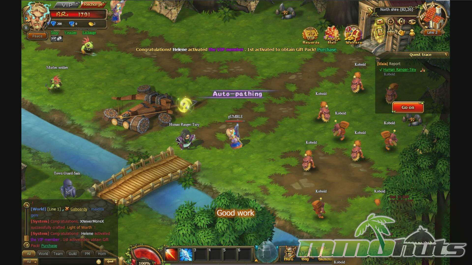 | Publisher: AMZGame Playerbase: Low Type: Browser MMORPG Release Date: November 12, 2015 Shut Down Date: November 25, 2016 Pros: +Bright, colorful presentation. +Straightforward interface. +Plenty of dungeon content. Cons: -Only a few class choices. -Heavily hands-off, automated progression. -Very familiar, WoW-like themes and naming. -Pay-to-win pressure. |