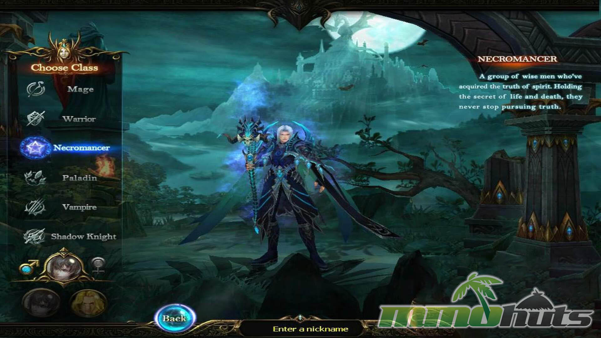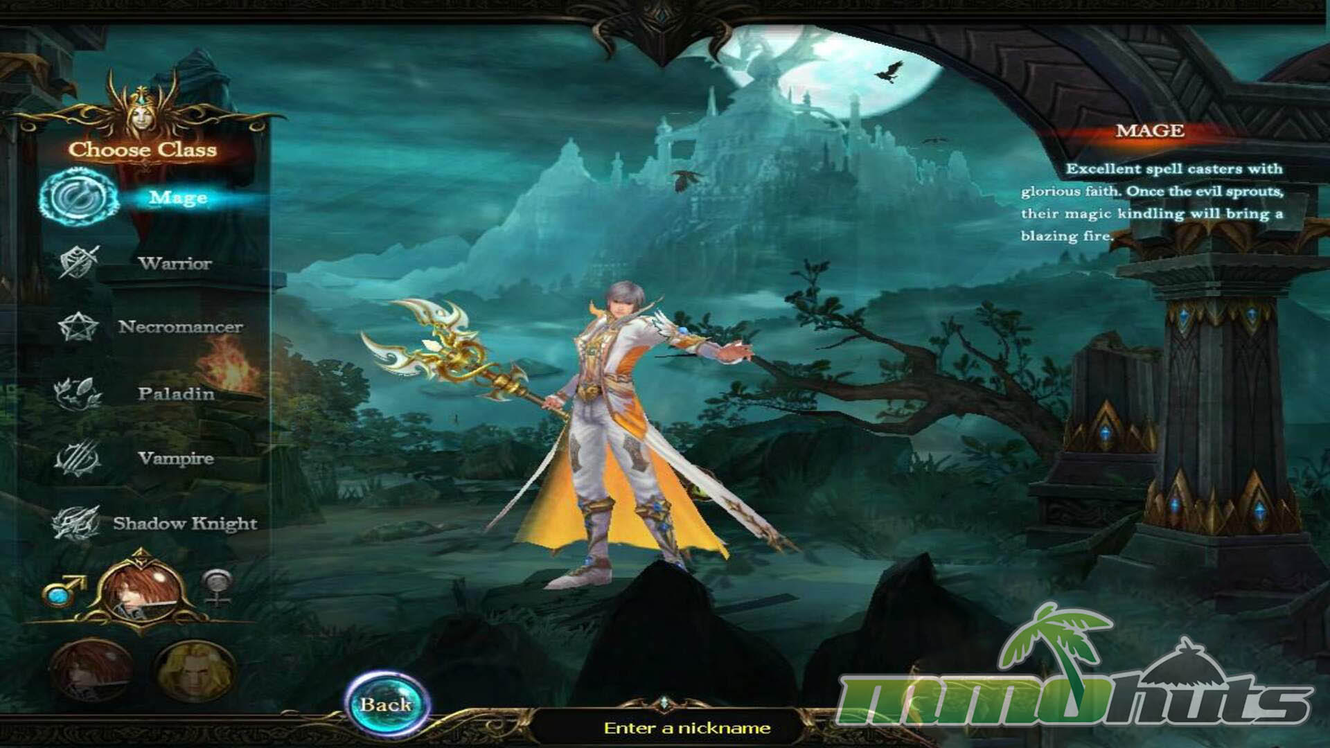 • Six Unique Classes – choose from six distinct classes (male or female): Warrior, Mage, Paladin, Vampire, Necromancer, and Shadow Knight.