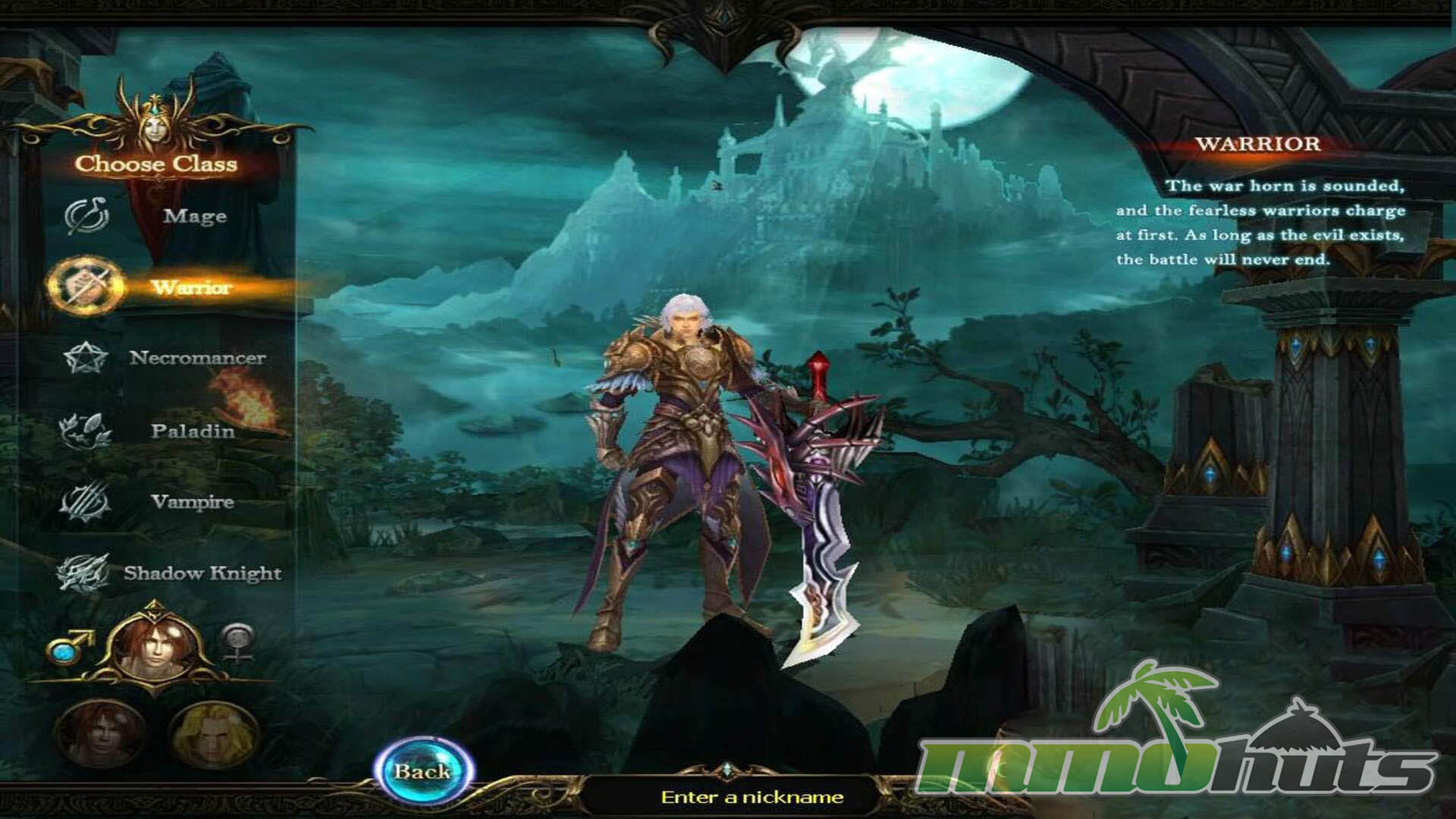 - Six Unique Classes – choose from six distinct classes (male or female): Warrior, Mage, Paladin, Vampire, Necromancer, and Shadow Knight.