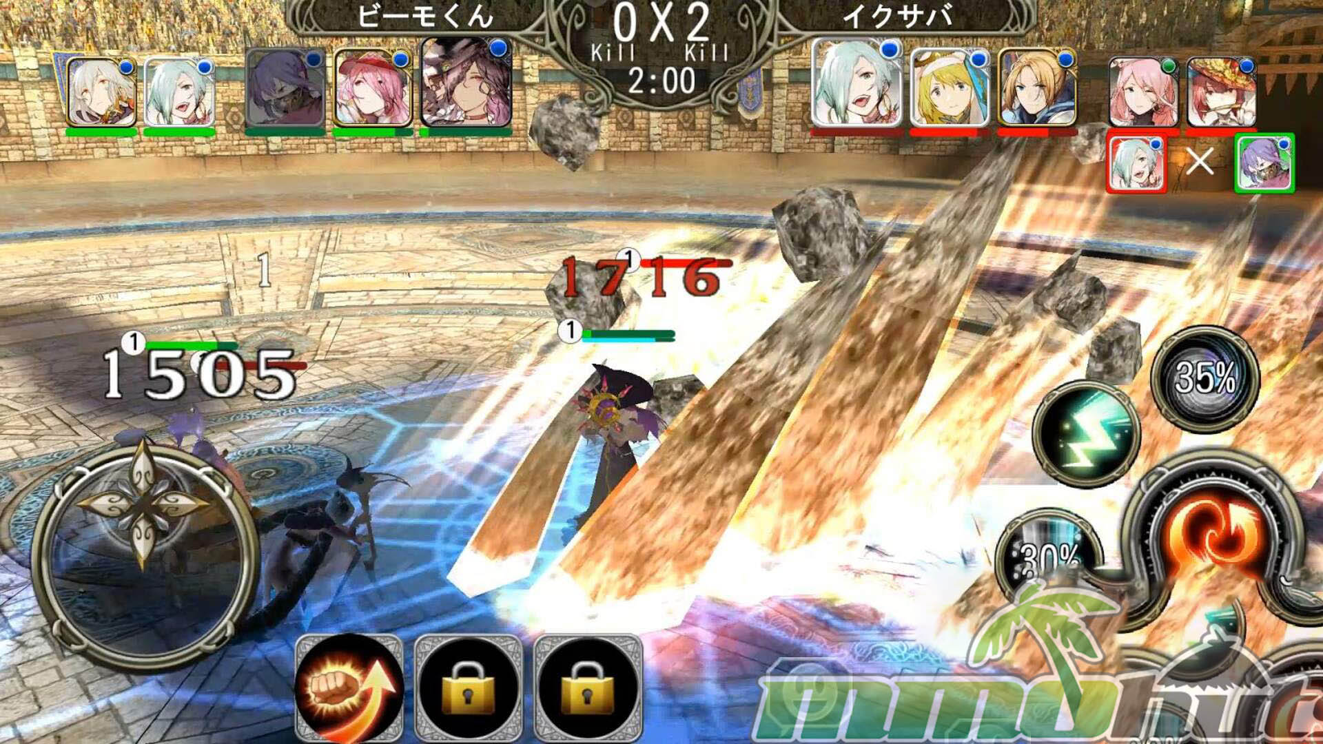 Controls follow a typical mobile action layout with a joystick-style movement pad and ability buttons for attacks and skills. The result feels closer to an arena action game than a traditional MMORPG, with positioning, cooldown timing, and target selection mattering more than long-term character building. Winning pushes you up rankings and rewards progression materials used to strengthen your roster, and new battlegrounds open as you continue playing, giving matches a bit more variety over time.