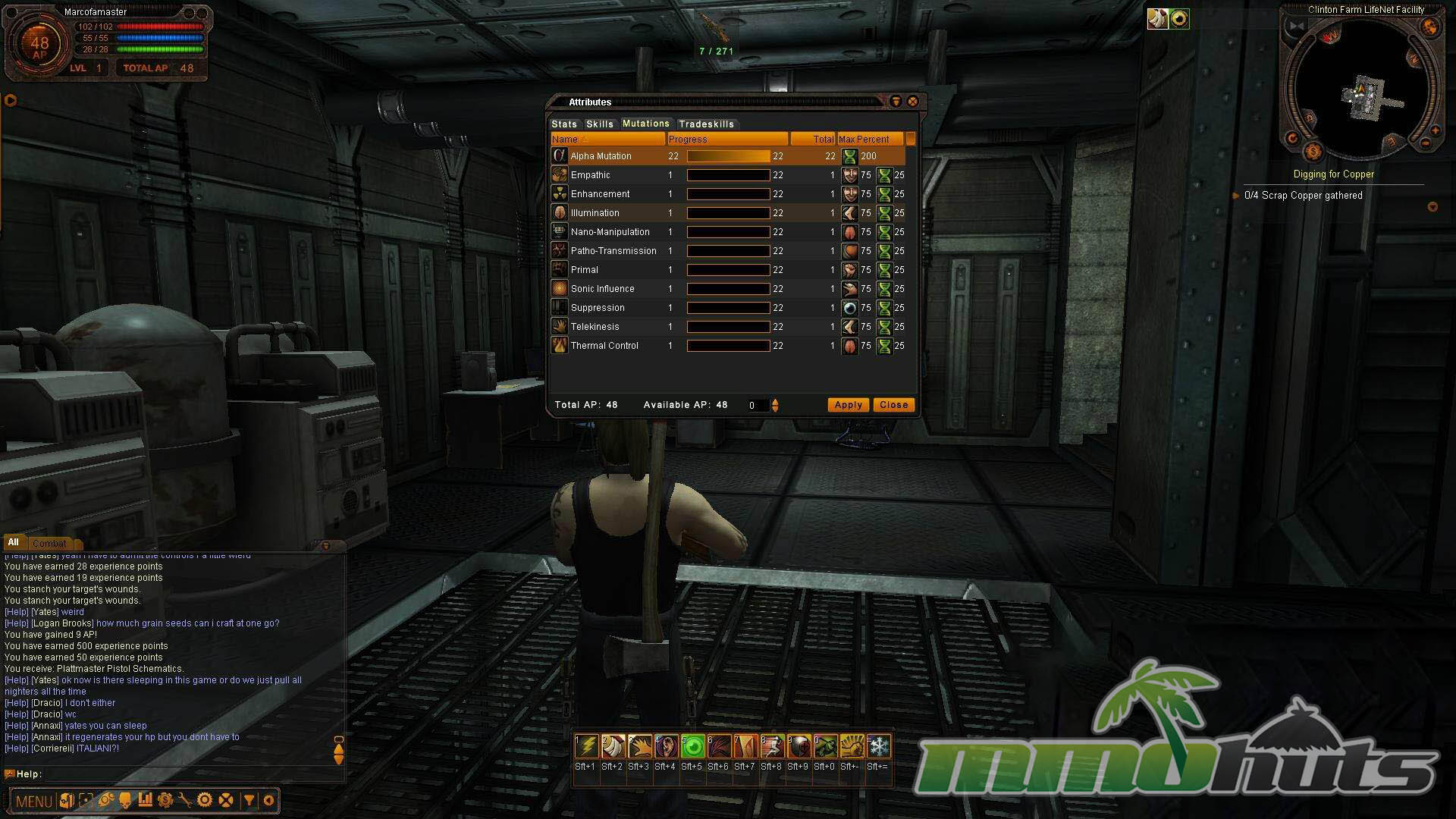 Fallen Earth’s progression is built around four pillars: Attributes, Skills, Mutations, and Tradeskills. Attributes function like permanent stat boosts and serve as the foundation for your build. Skills provide active abilities with temporary effects, including combat techniques and utility boosts, and using them consumes Stamina. Mutations act as an additional layer of power that can be active or passive, fueled by Gamma instead of Stamina, and they are designed to complement the way you fight.