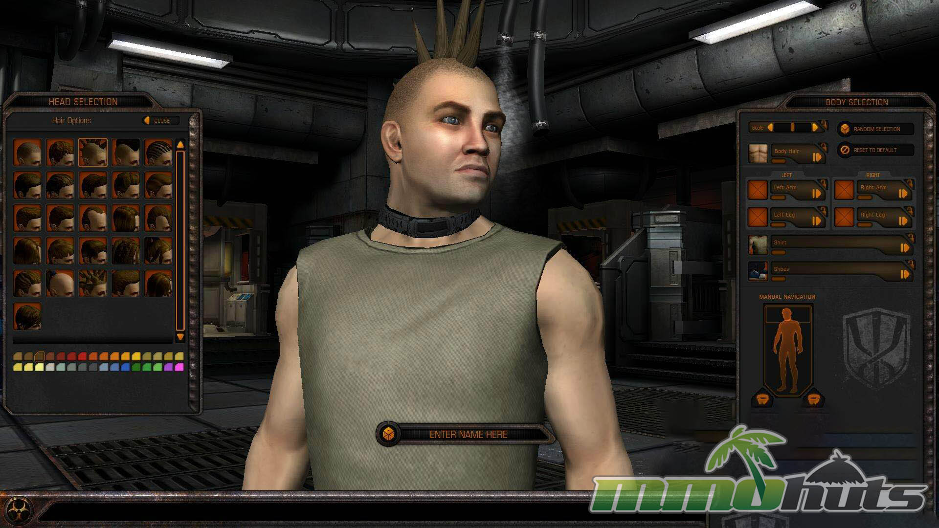 Character creation gives you a respectable set of options for a game of its era, including choices for facial features, hair, clothing, and cosmetic details like tattoos and piercings. It is not the modern slider-heavy approach seen in newer MMOs, so you will still notice familiar-looking faces out in the world, but it does enough to make your clone feel like yours. One limitation worth keeping in mind is that accounts start with a single character slot, with a second available through an extra purchase, so it is worth taking your time before finalizing your look.