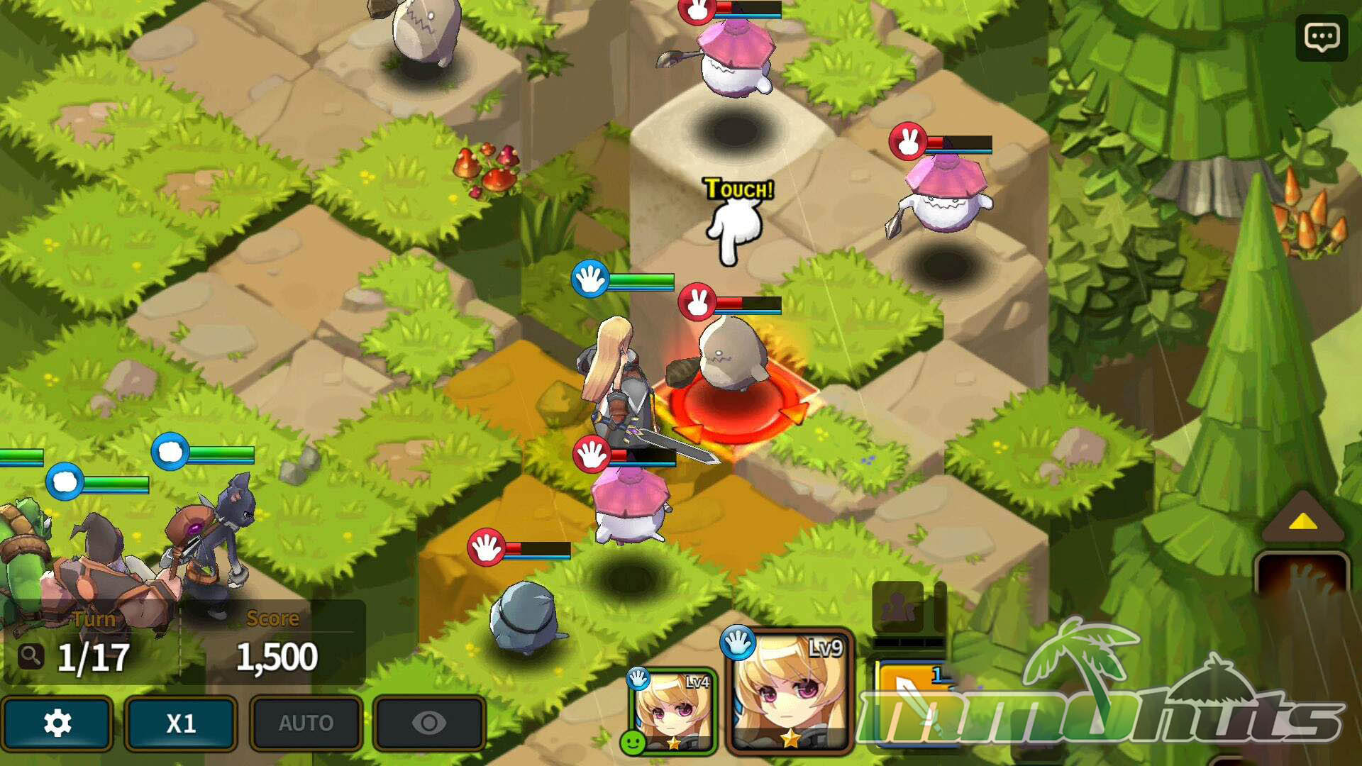 The main game is structured around a large set of instanced stages across multiple islands. Each map advances the story and introduces different enemy compositions and terrain layouts, keeping the tactical puzzle from getting too repetitive early on. You bring a party of up to five Heroes, and most missions are designed to be completed quickly, often in just a few minutes, which suits mobile play well.