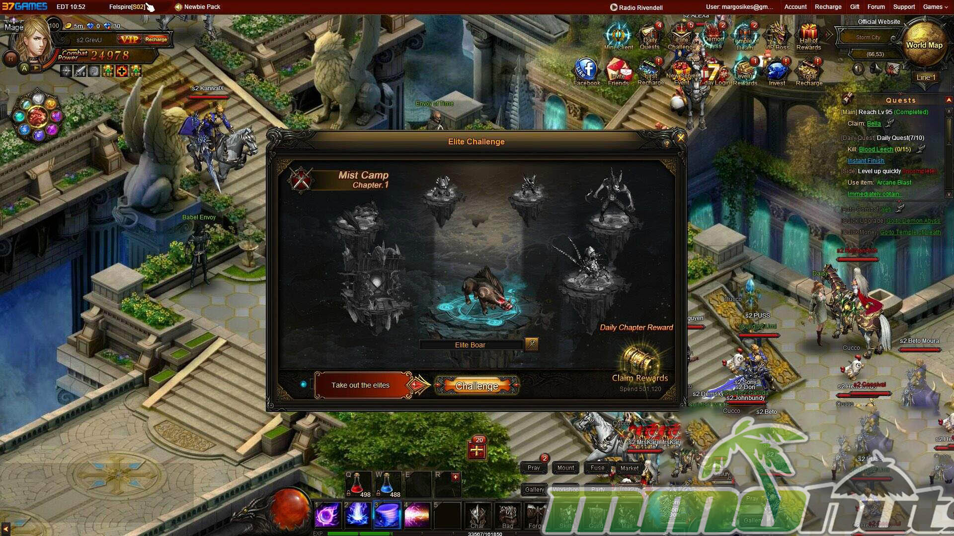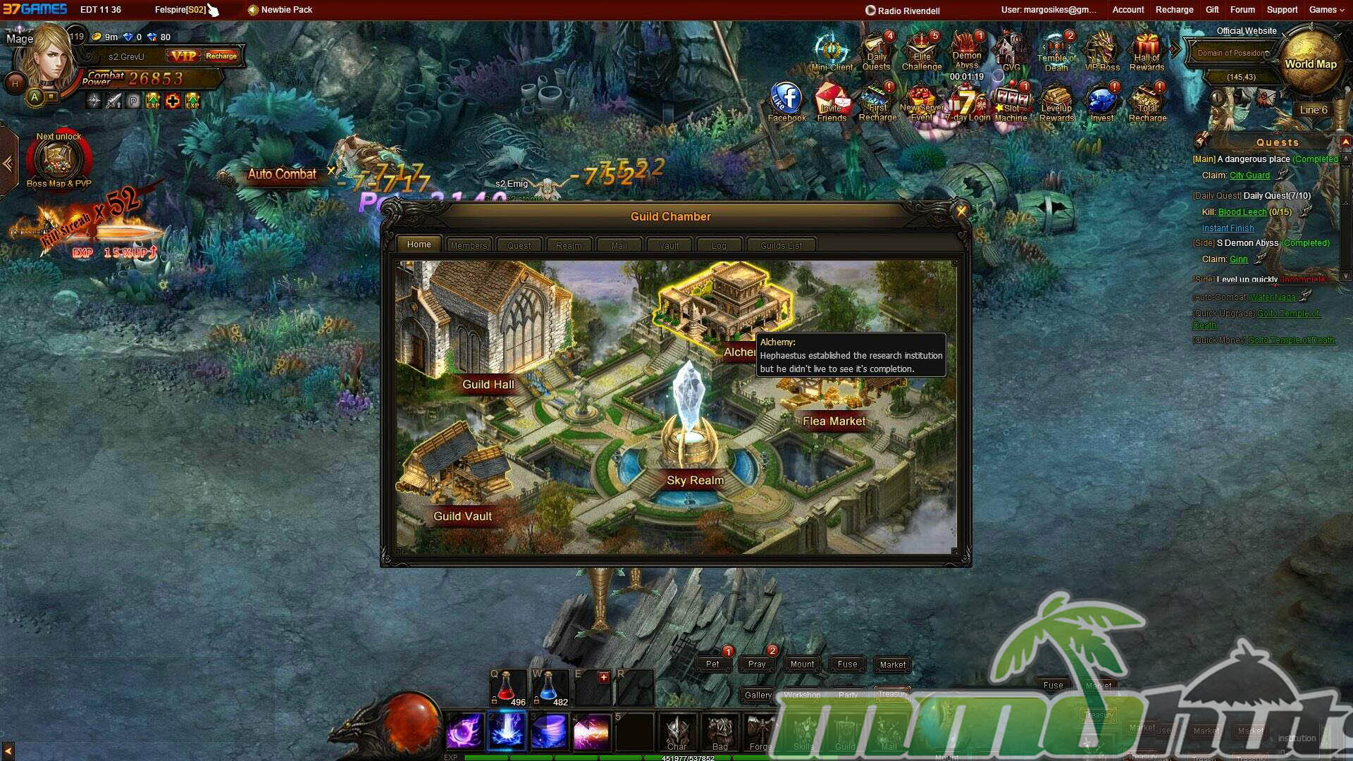 What separates Felspire from many other browser MMORPGs is how much of that growth can be automated. Once you unlock the AFK Helper (after your second class advancement), the game can handle routine leveling and farming while you focus on the activities that ask for more attention, such as PvP arenas, dungeon runs, and guild-focused battles. Progression also extends well past early leveling through multiple class advancements, beginning at level 150, which push your character into more specialized roles as you continue to build power.