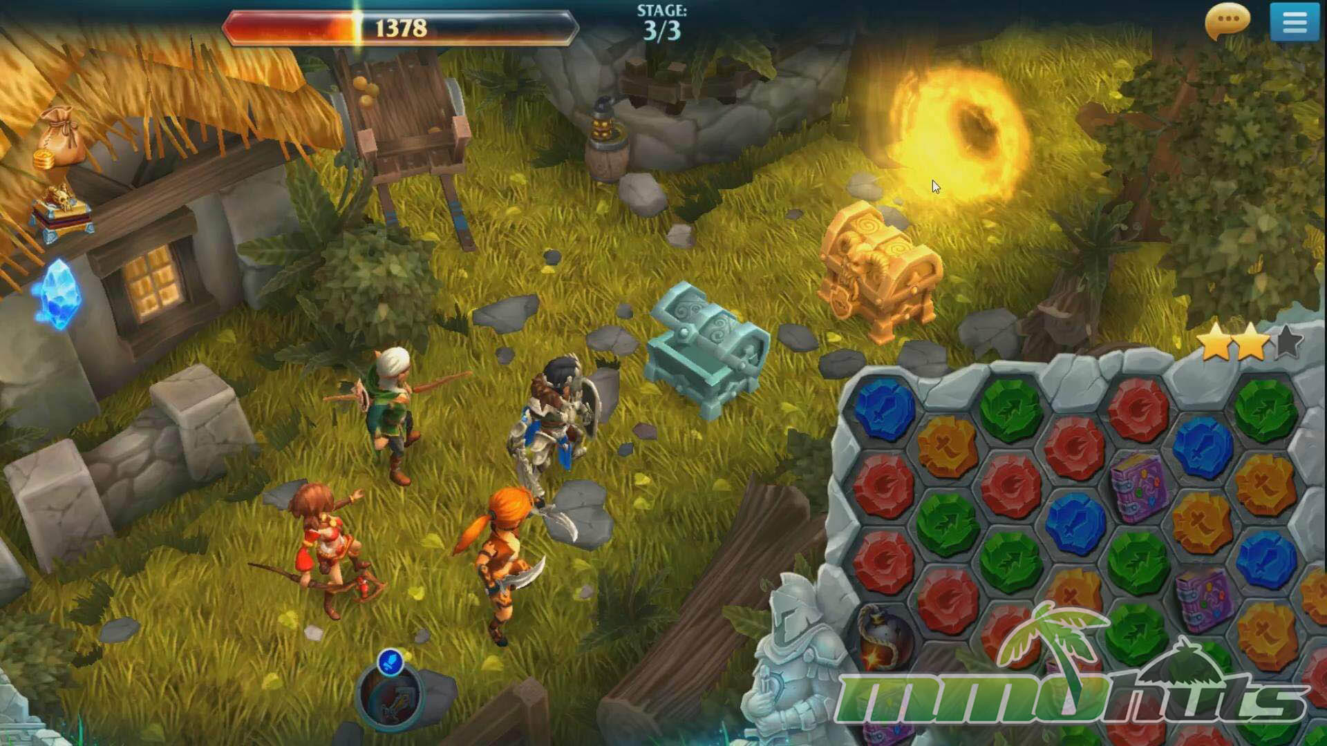 Forge Of Glory is a mobile dungeon-crawling RPG that blends party-based adventuring with a match-style puzzle combat system. You recruit heroes, clear monster-filled corridors, and gather materials to strengthen your team and expand a home stronghold that provides long-term progression.