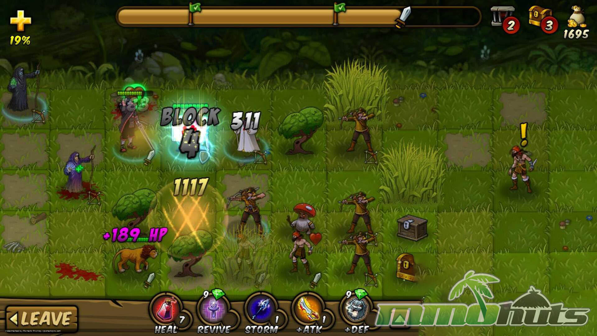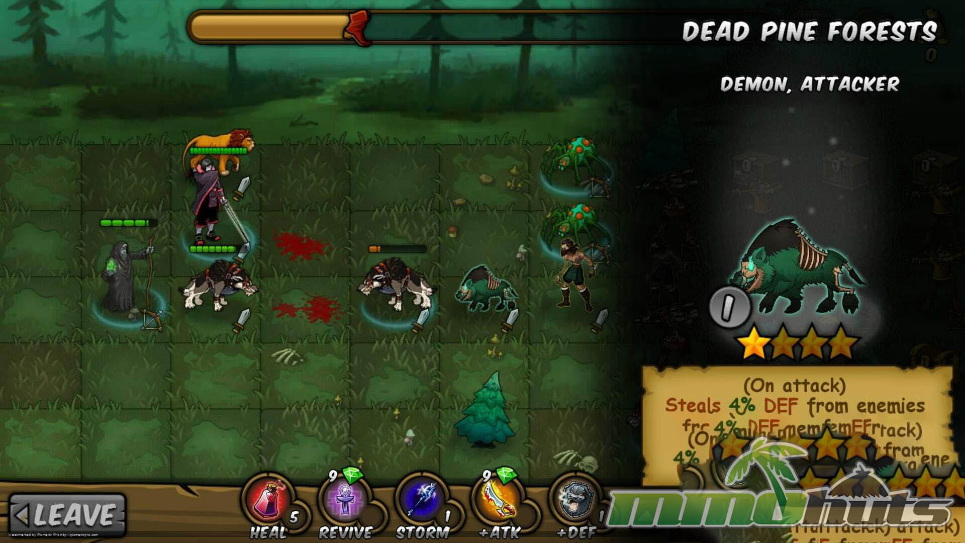 Combat plays out on a grid where your squad advances from the left side toward the right, and positioning matters as much as raw stats. The battlefield is populated by four broad unit roles, Attackers, Defenders, Ranged, and Stouts, and effective teams typically mix these archetypes to cover weaknesses and create favorable matchups. Units also bring passive aura effects that can bolster allies, making lineup order and placement important for squeezing value out of a deck.