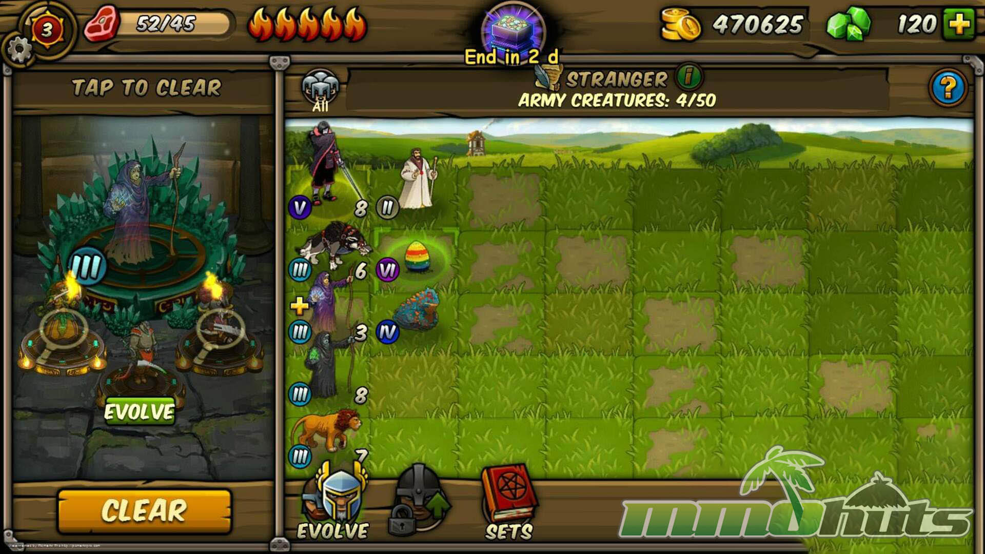 Outside of battles, Forge of Gods leans into long-term progression. You can improve heroes by leveling them up, increasing rarity through evolution paths, and combining cards via fusion mechanics. The game also includes social and meta features such as guilds (with ranks, chat, and guild wars), a friend system, Achievements, and a castle-style hub where much of the management takes place.