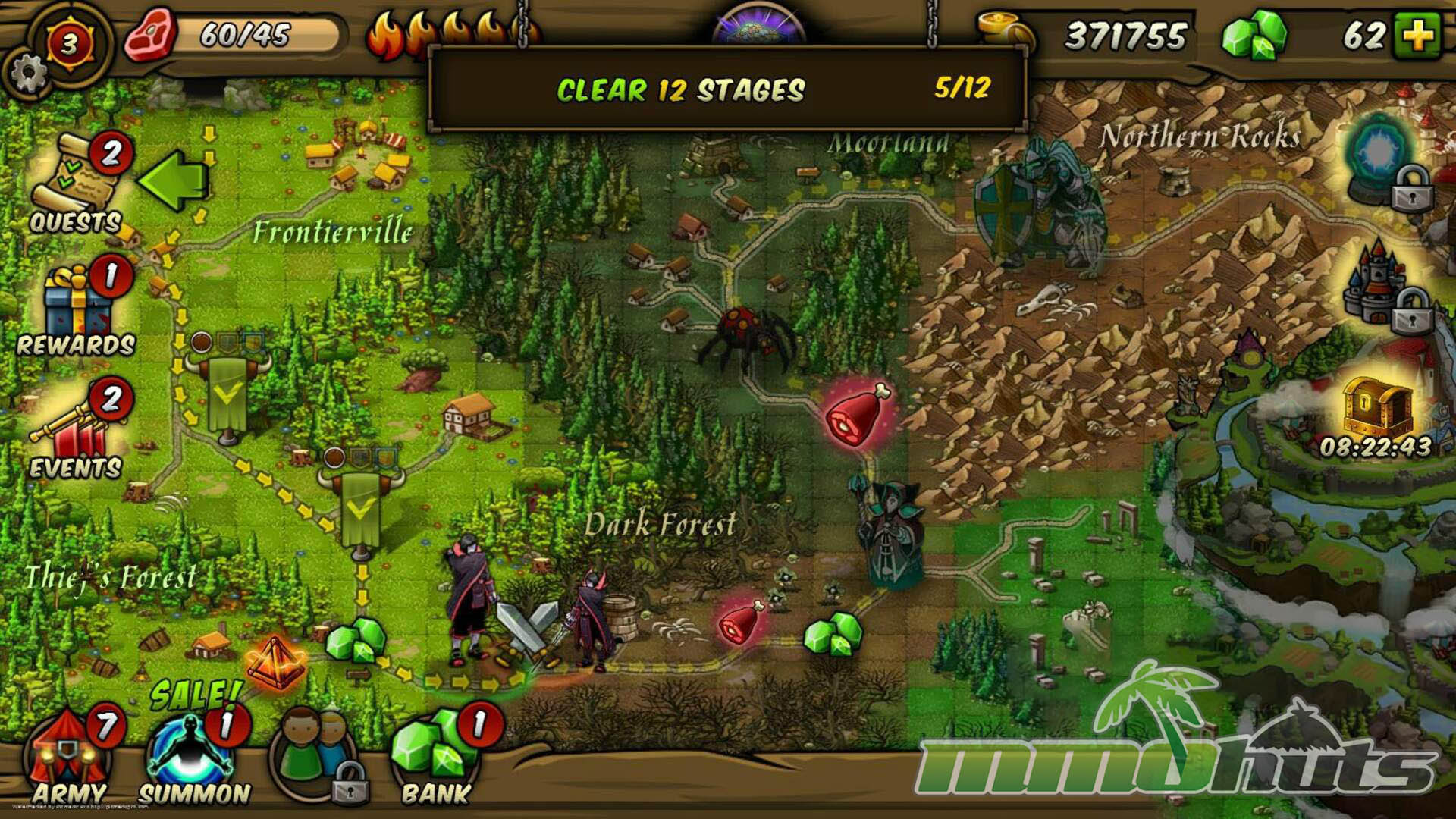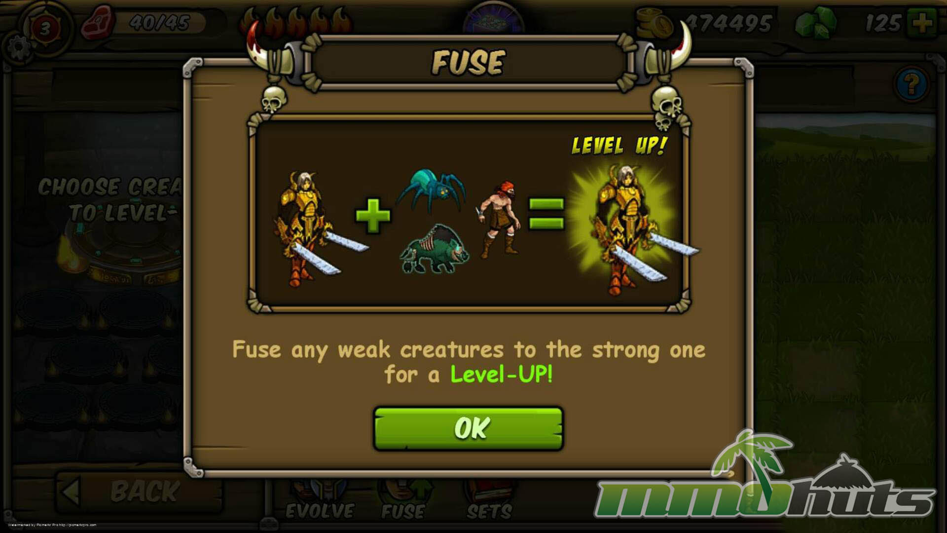 Outside of battles, Forge of Gods leans into long-term progression. You can improve heroes by leveling them up, increasing rarity through evolution paths, and combining cards via fusion mechanics. The game also includes social and meta features such as guilds (with ranks, chat, and guild wars), a friend system, Achievements, and a castle-style hub where much of the management takes place.