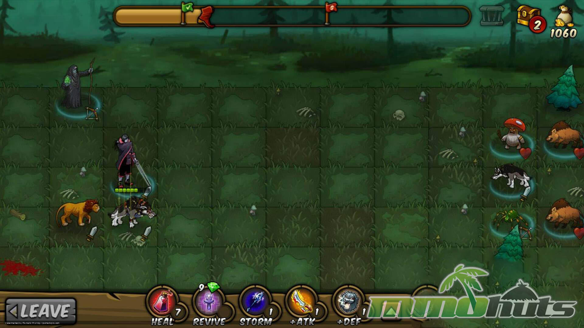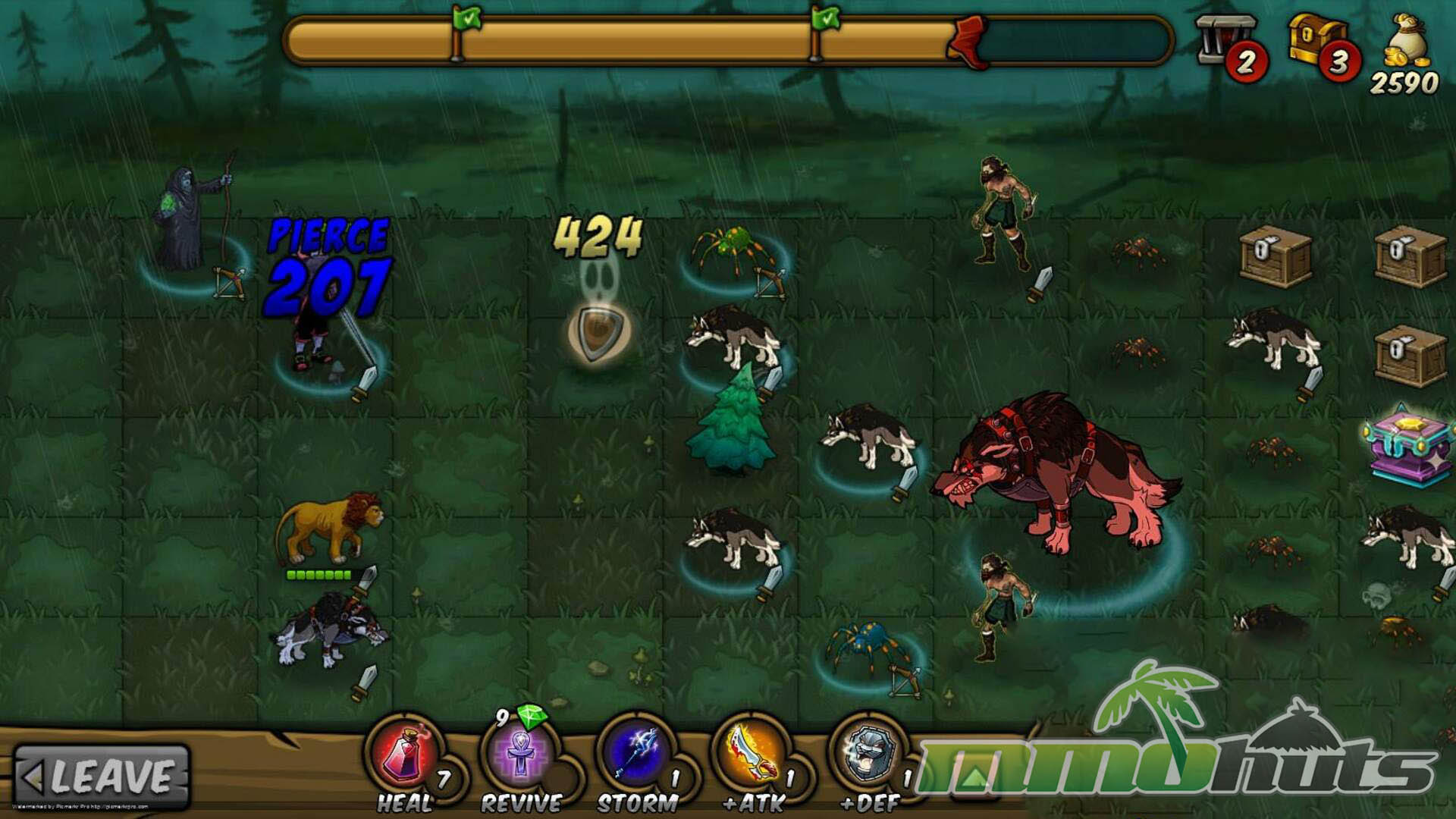 Combat plays out on a grid where your squad advances from the left side toward the right, and positioning matters as much as raw stats. The battlefield is populated by four broad unit roles, Attackers, Defenders, Ranged, and Stouts, and effective teams typically mix these archetypes to cover weaknesses and create favorable matchups. Units also bring passive aura effects that can bolster allies, making lineup order and placement important for squeezing value out of a deck.