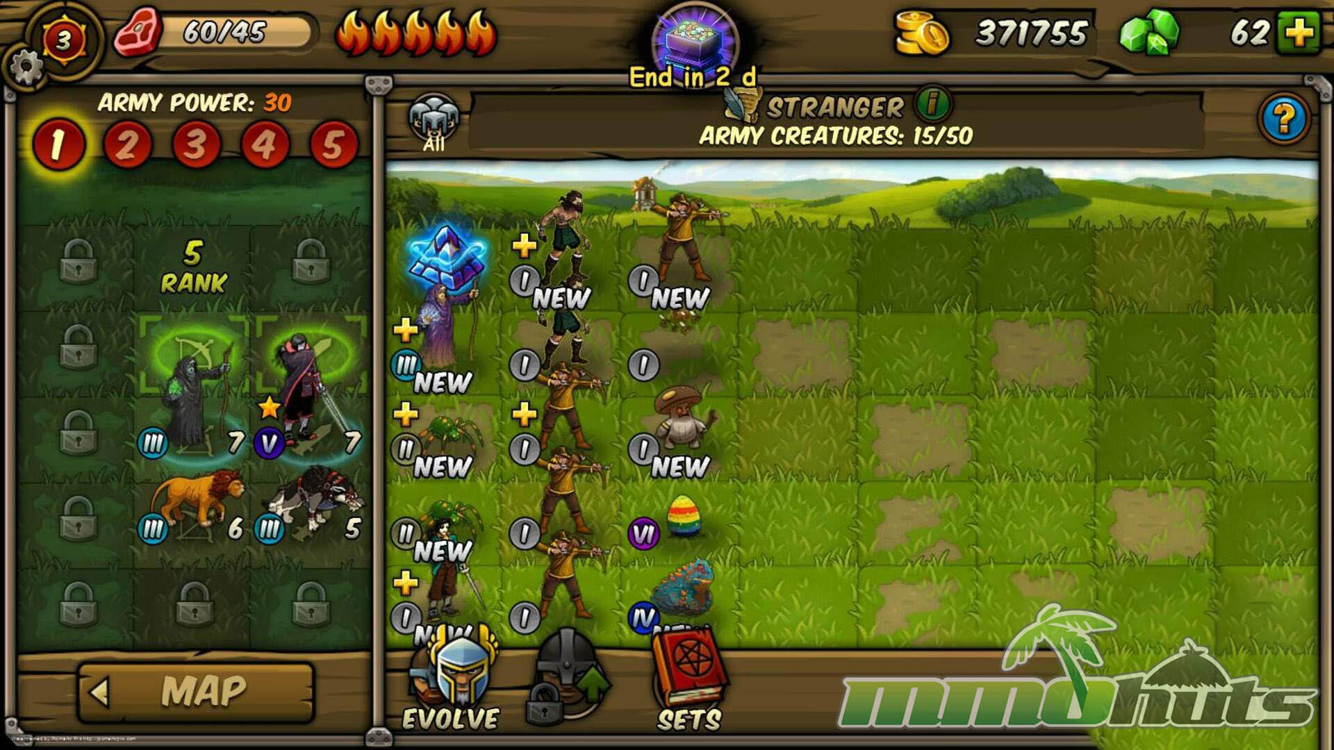 Outside of battles, Forge of Gods leans into long-term progression. You can improve heroes by leveling them up, increasing rarity through evolution paths, and combining cards via fusion mechanics. The game also includes social and meta features such as guilds (with ranks, chat, and guild wars), a friend system, Achievements, and a castle-style hub where much of the management takes place.