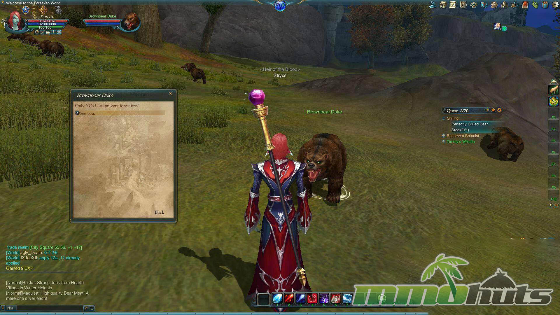Moment to moment, Forsaken World plays closer to a traditional theme park MMO than many of its contemporaries. Movement and camera controls are familiar (WASD plus mouse controls), and the early game flows from hub to hub with a strong emphasis on story-driven quest chains. Visually and structurally, it often recalls Western MMO pacing, even if the presentation and some systems still echo the free-to-play Asian MMO era it came from.