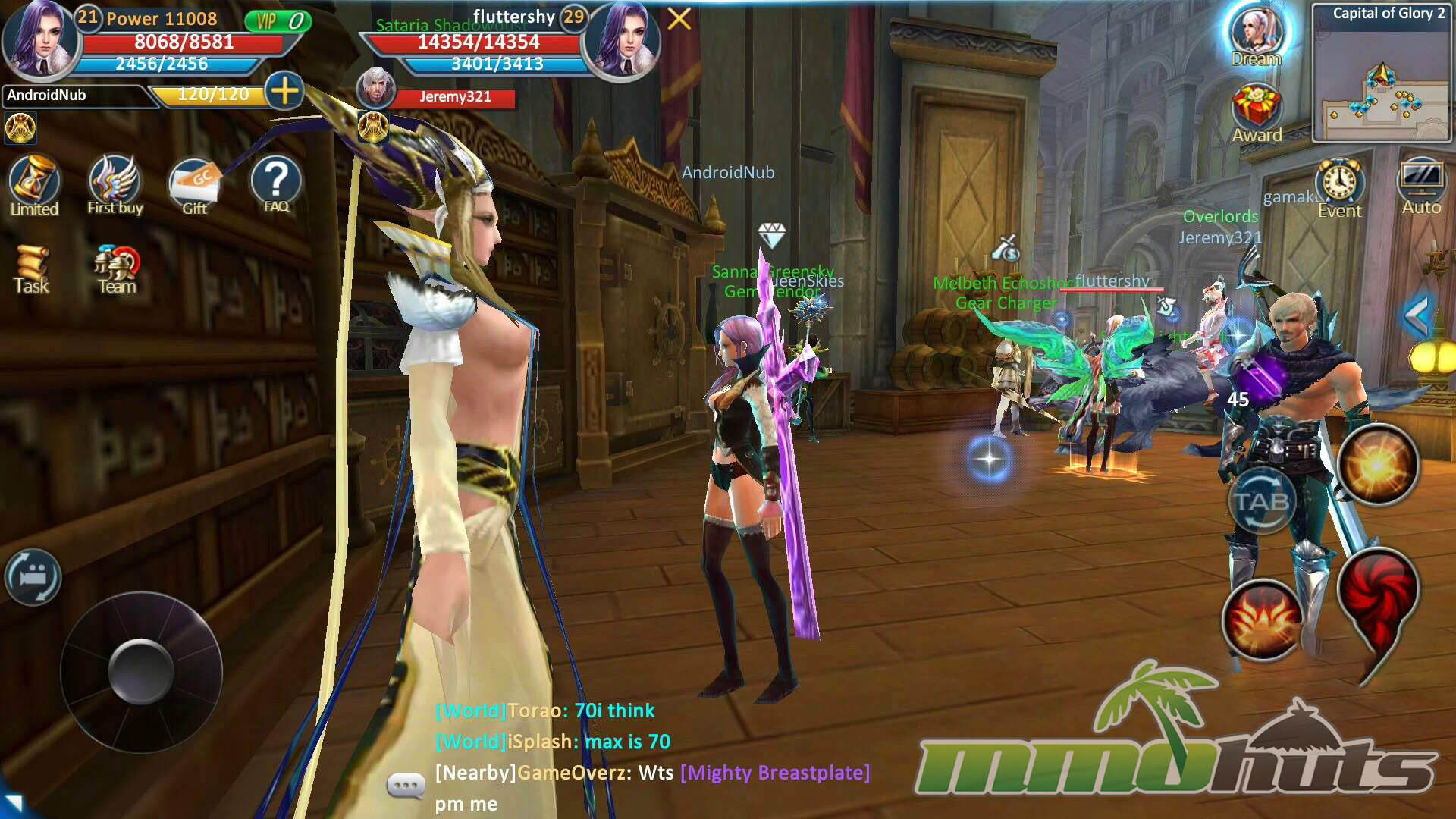 Combat sits between traditional MMO targeting and mobile action controls. Movement can be handled by tapping the ground or by using a virtual joystick, while attacks and skills live on on-screen buttons. In practice, it often feels closer to a streamlined MMO style than a true dodge-heavy action RPG. Basic attacking can come across like an auto-attack rhythm because the animations and cadence do not demand constant inputs, and there is no dedicated dodge mechanic to make positioning feel as reactive as some action RPGs.