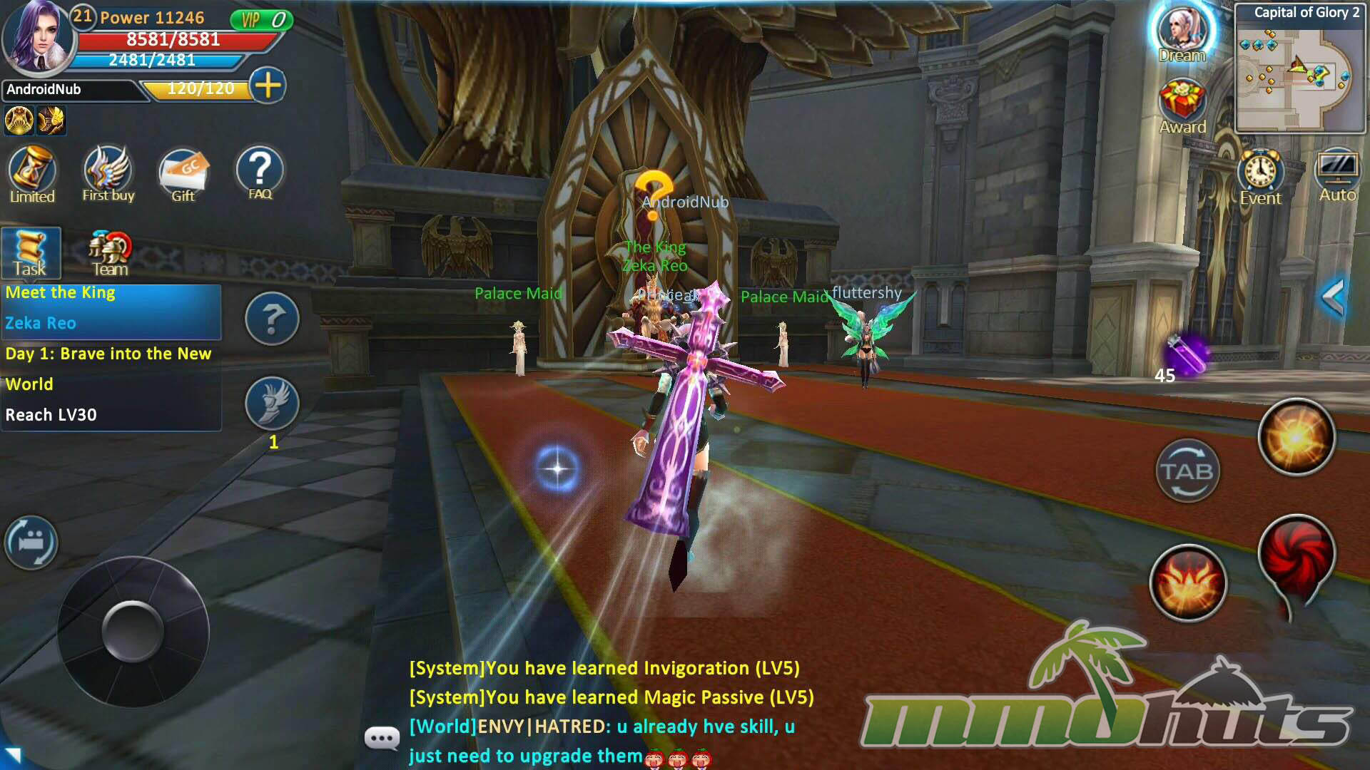 Combat sits between traditional MMO targeting and mobile action controls. Movement can be handled by tapping the ground or by using a virtual joystick, while attacks and skills live on on-screen buttons. In practice, it often feels closer to a streamlined MMO style than a true dodge-heavy action RPG. Basic attacking can come across like an auto-attack rhythm because the animations and cadence do not demand constant inputs, and there is no dedicated dodge mechanic to make positioning feel as reactive as some action RPGs.