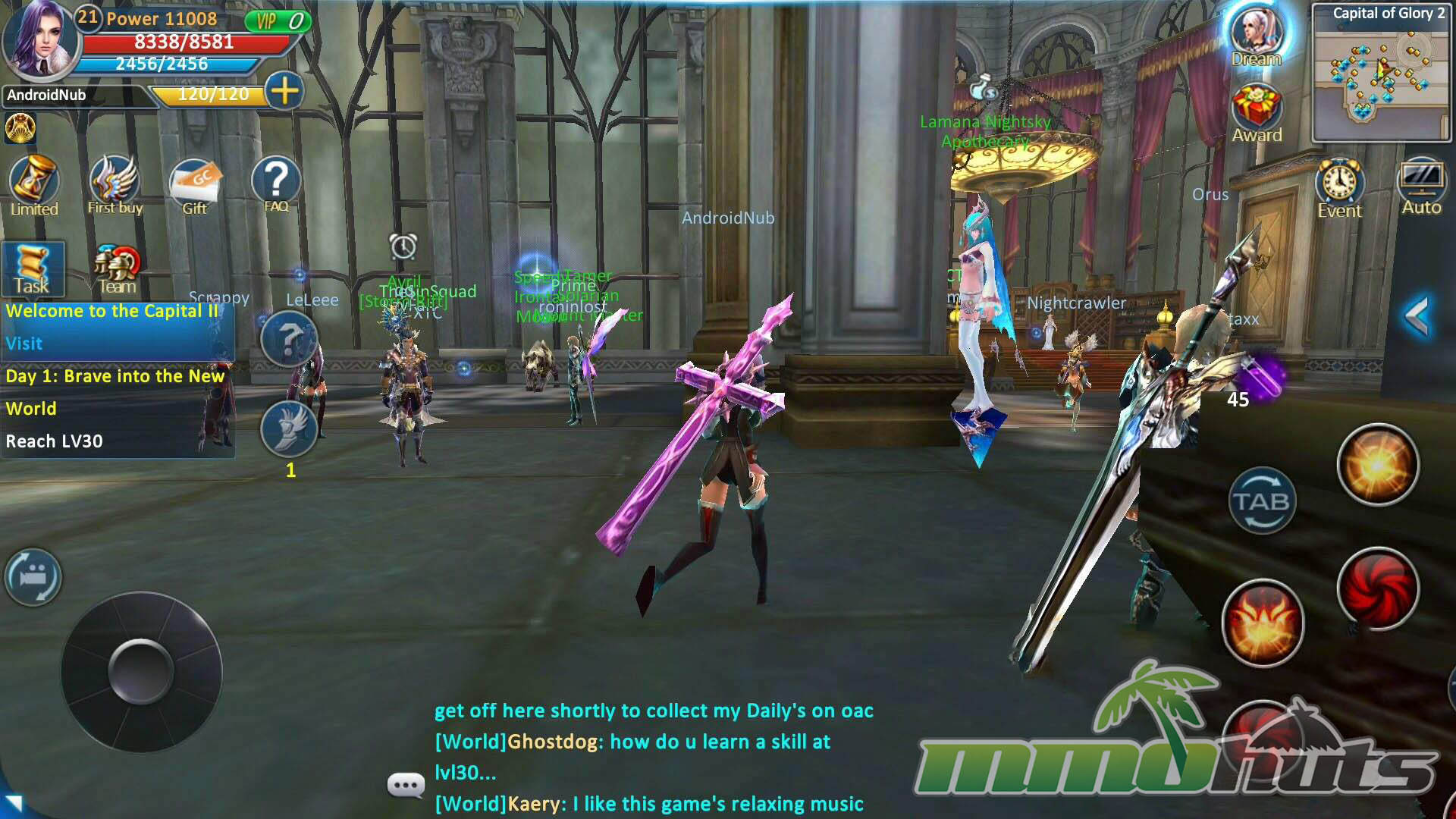 Forsaken World Mobile’s world design is one of its biggest selling points. Many mobile MMORPGs advertise “open worlds” but still rely on segmented zones and frequent transitions. Here, towns and surrounding wilderness areas connect more naturally, and you can move between populated hubs and outdoor hunting grounds without the constant stop-start feeling of loading screens. After the tutorial, you arrive in a busy city where it is immediately clear the game is built around shared spaces, with NPCs and players densely packed together.