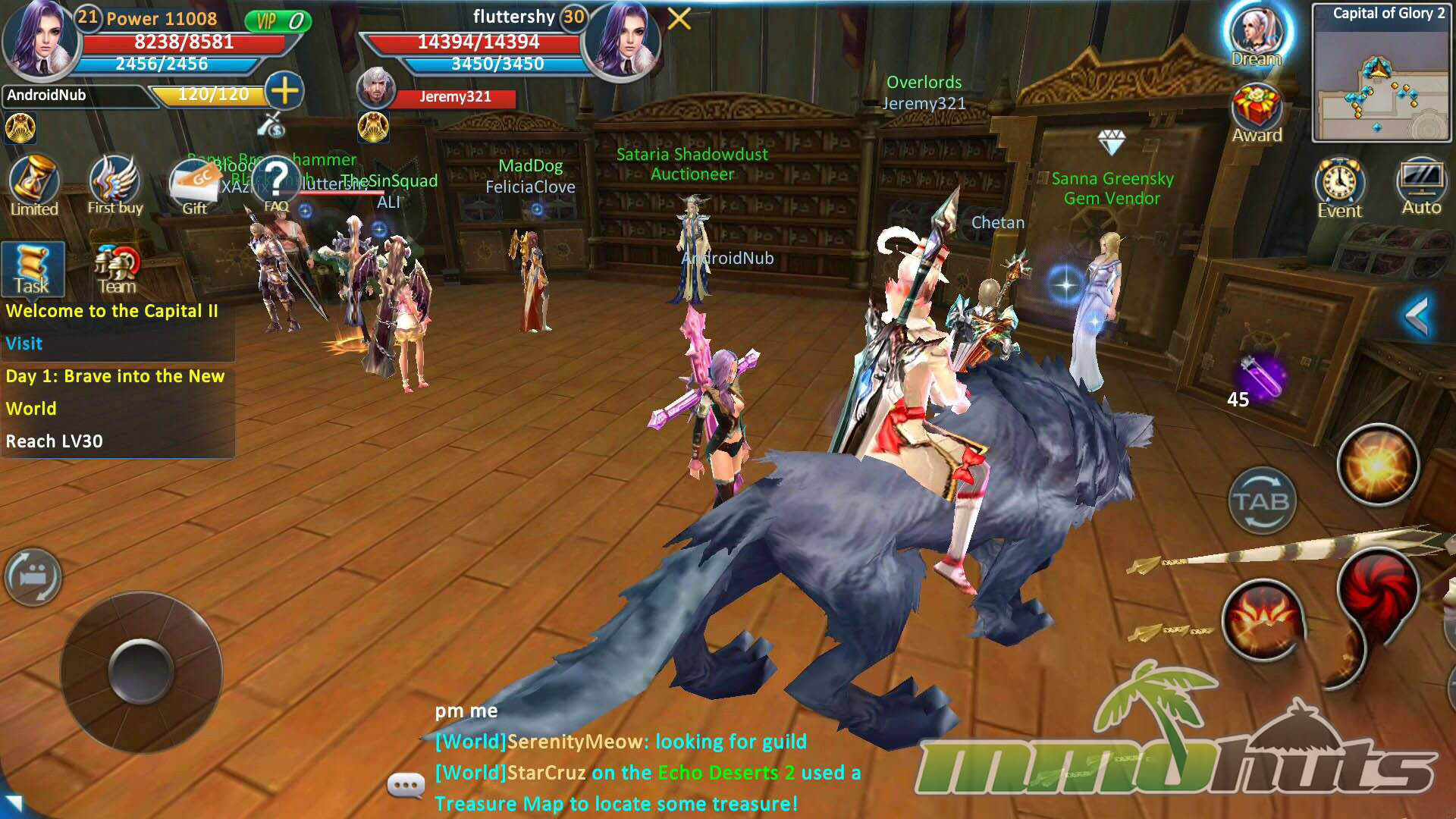 Forsaken World Mobile’s world design is one of its biggest selling points. Many mobile MMORPGs advertise “open worlds” but still rely on segmented zones and frequent transitions. Here, towns and surrounding wilderness areas connect more naturally, and you can move between populated hubs and outdoor hunting grounds without the constant stop-start feeling of loading screens. After the tutorial, you arrive in a busy city where it is immediately clear the game is built around shared spaces, with NPCs and players densely packed together.