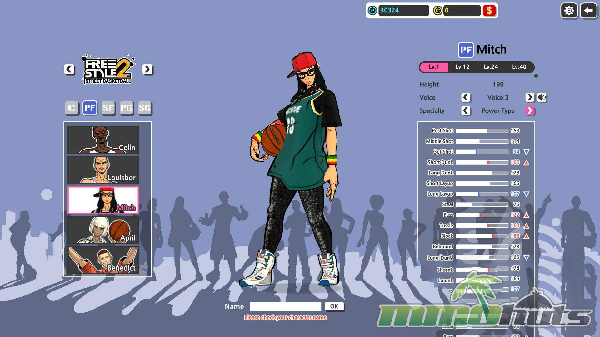 Your first real choice is your position, which acts as your class. FreeStyle 2 offers five: Center (C), Power Forward (PF), Small Forward (SF), Point Guard (PG), and Shooting Guard (SG). Compared to the original game’s more limited roles, the added positions make team composition more interesting and give players more specific identities on the court.