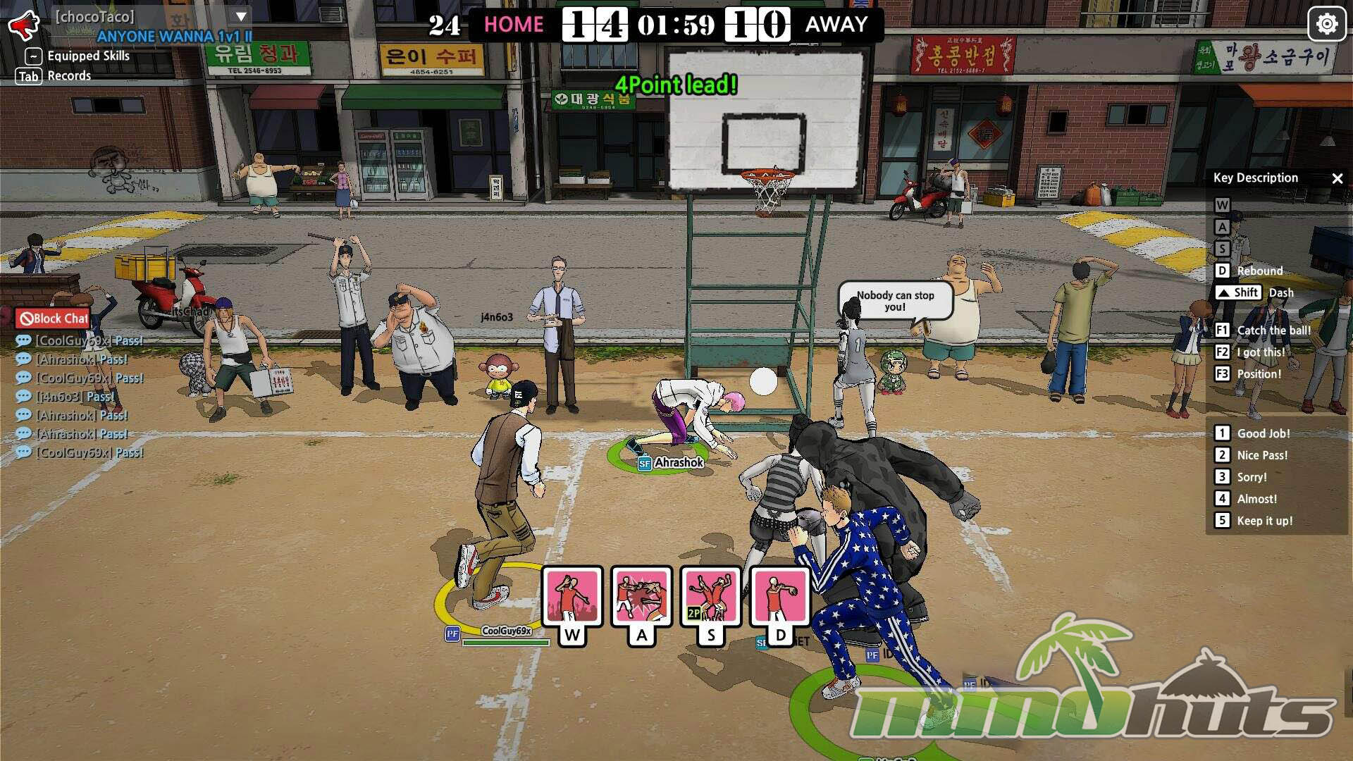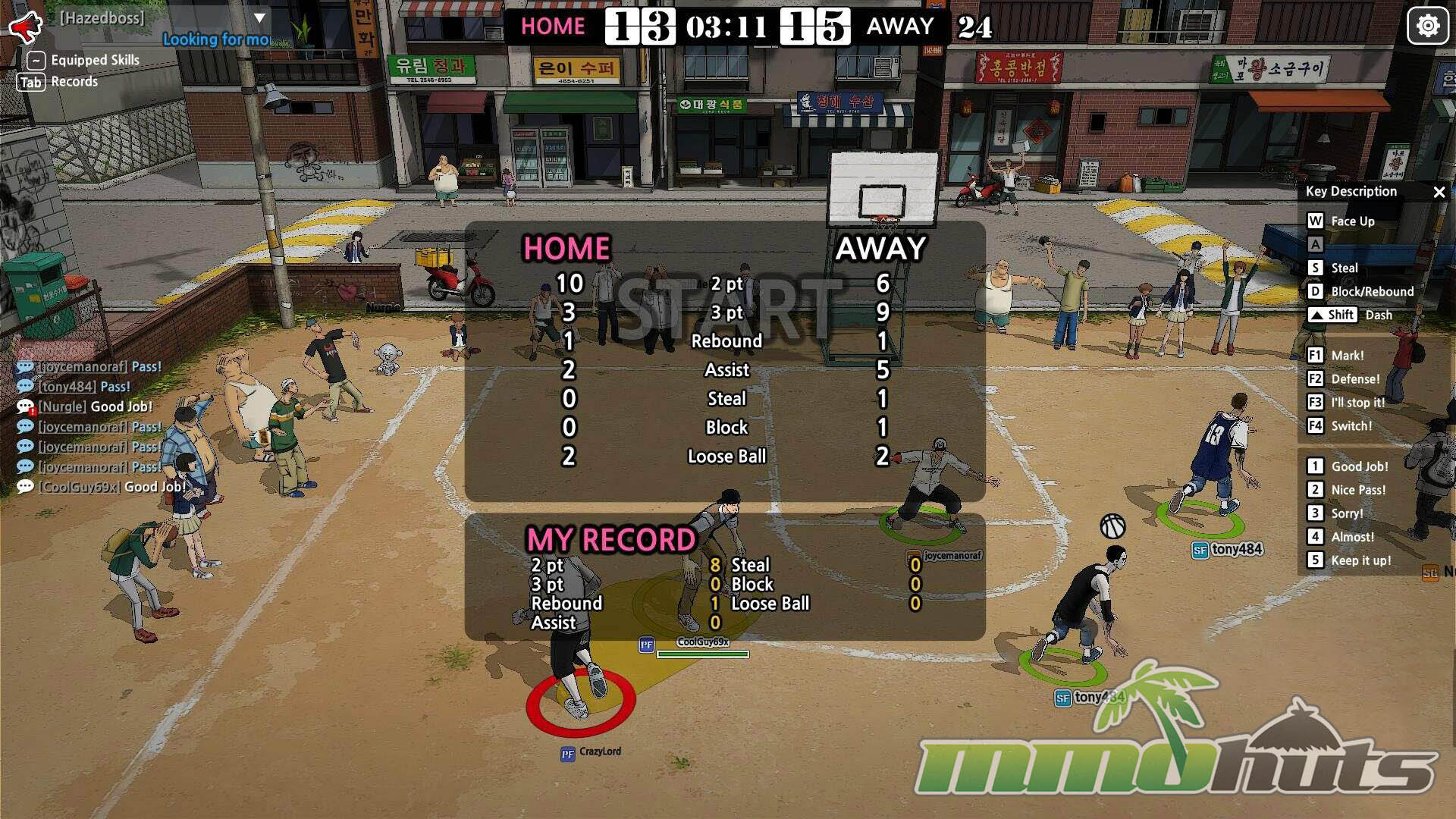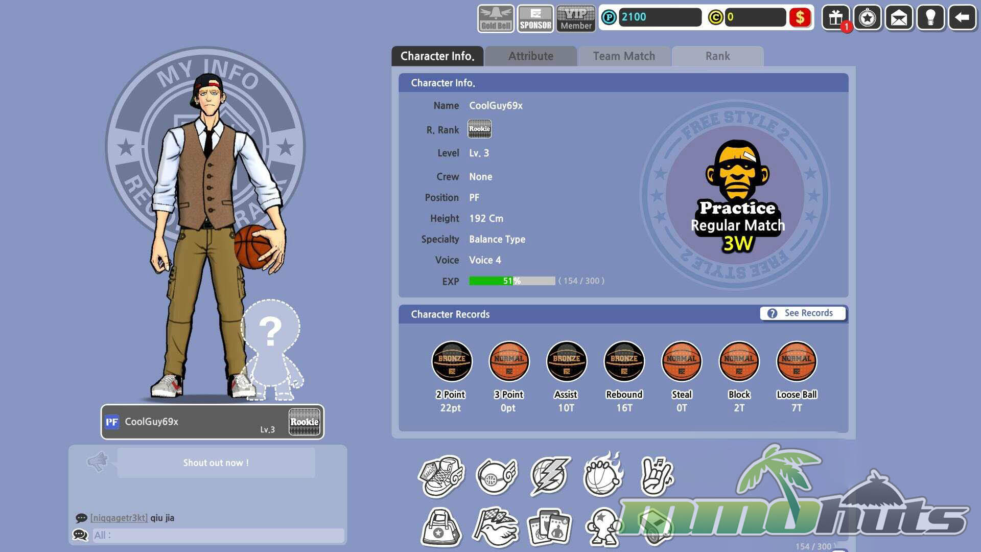 Beyond matches, FreeStyle 2 includes the expected MMO framework. Crews (the guild system) give players a social home, and stat tracking is detailed enough to appeal to competitive-minded players, with records for wins, points, blocks, ratios, and more available through the character interface.