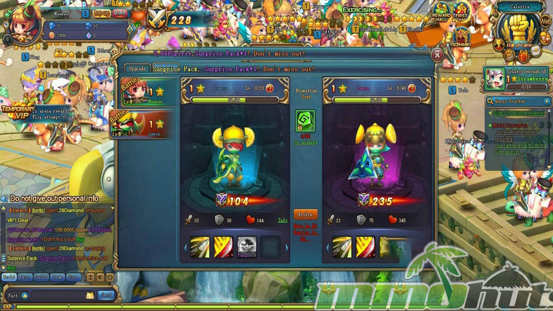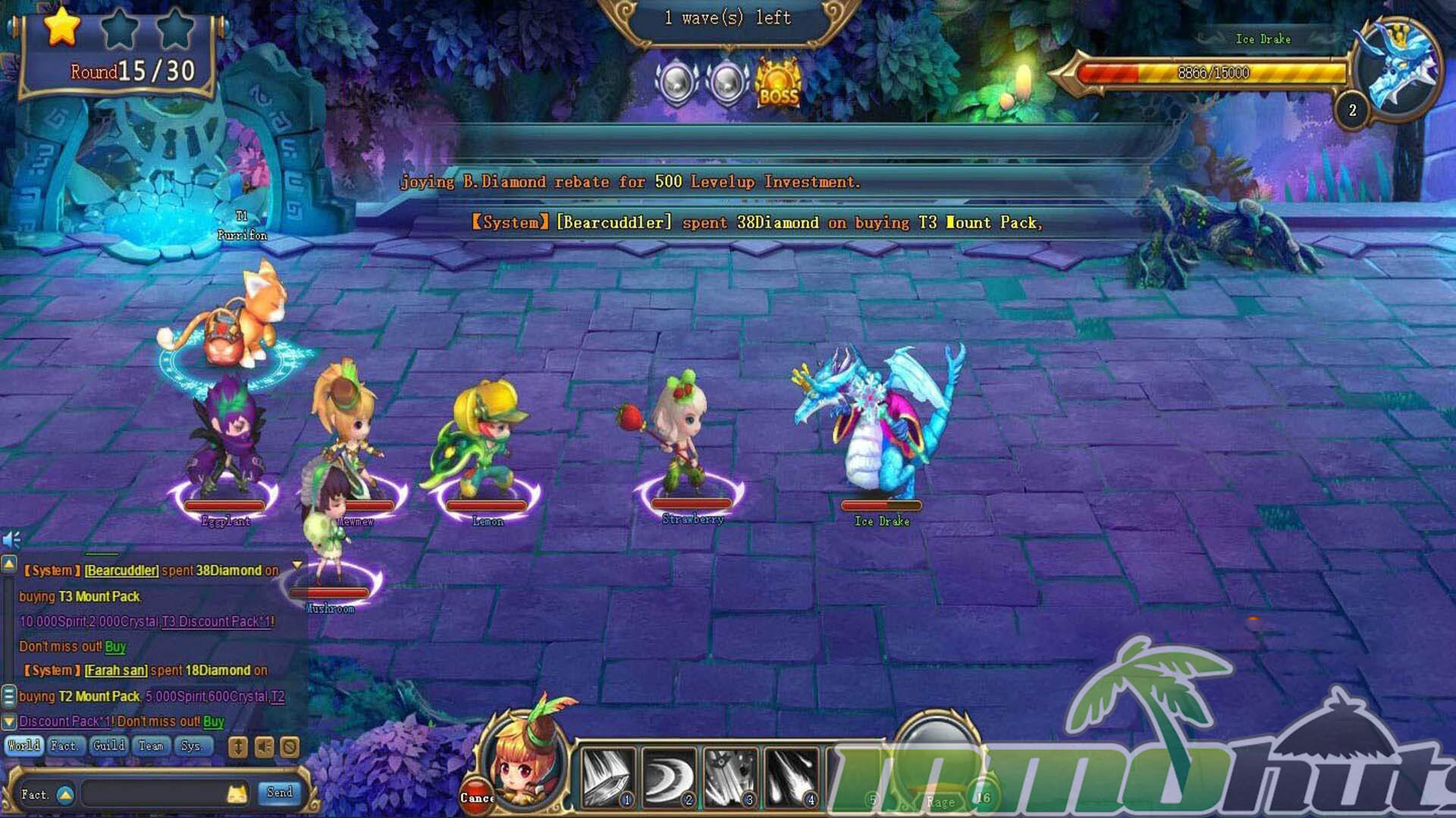 Fruit Warriors is a free-to-play, browser-based MMORPG that builds its identity around an army of adorable fruit-themed fighters. You assemble a party of companions with distinct combat roles, ride mounts to speed up travel, and push through a steady stream of dungeons and boss encounters while demons threaten the world. It is a light, auto-friendly RPG experience designed for quick sessions and constant upgrades.