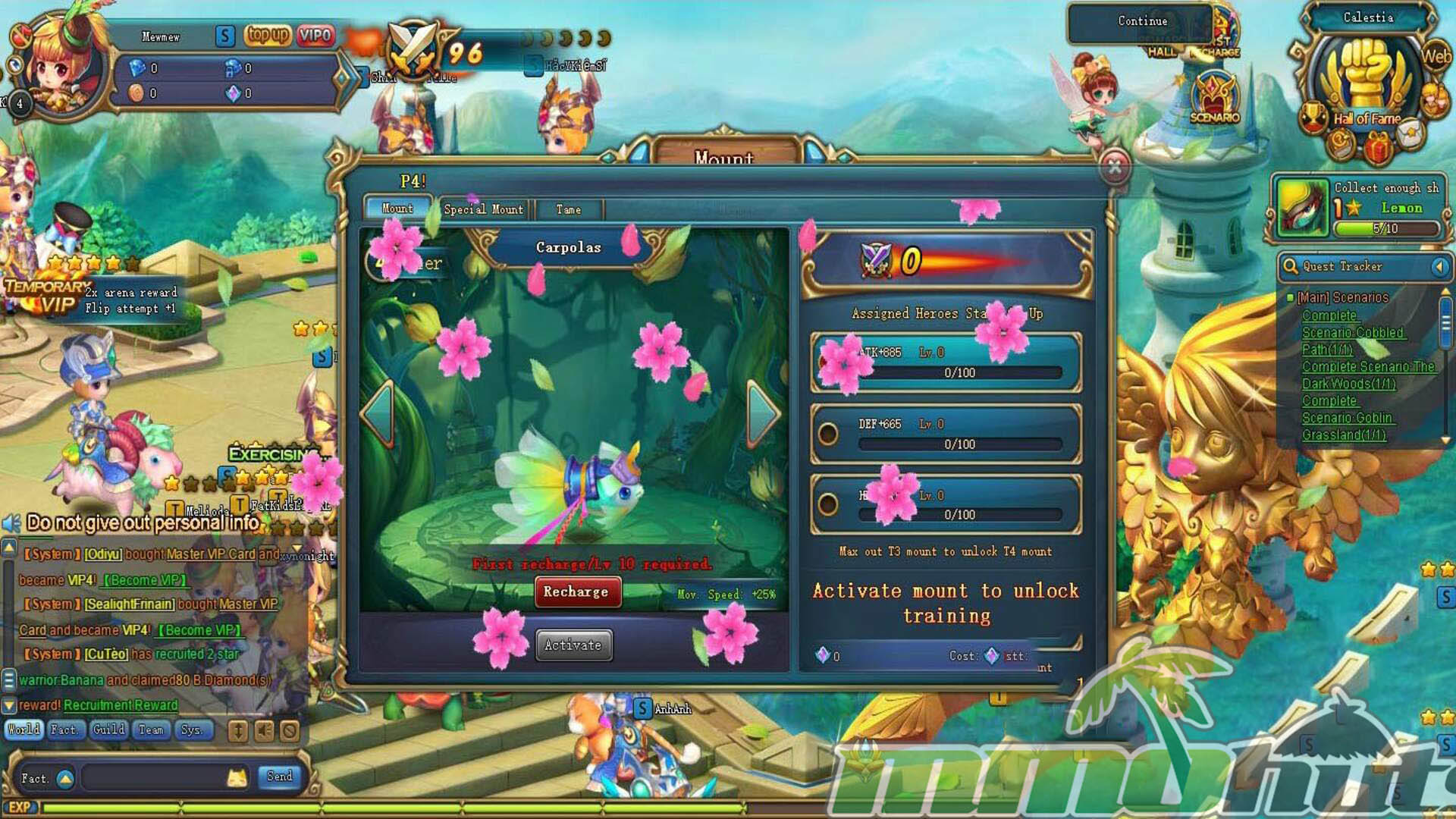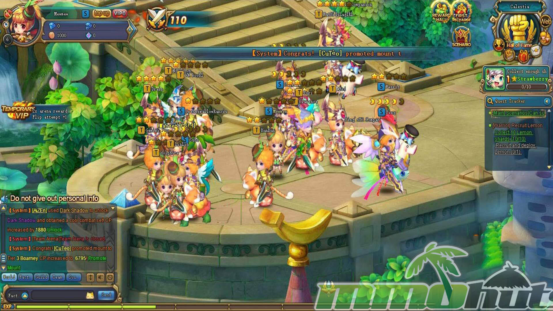 Fruit Warriors is a free-to-play, browser-based MMORPG that builds its identity around an army of adorable fruit-themed fighters. You assemble a party of companions with distinct combat roles, ride mounts to speed up travel, and push through a steady stream of dungeons and boss encounters while demons threaten the world. It is a light, auto-friendly RPG experience designed for quick sessions and constant upgrades.
