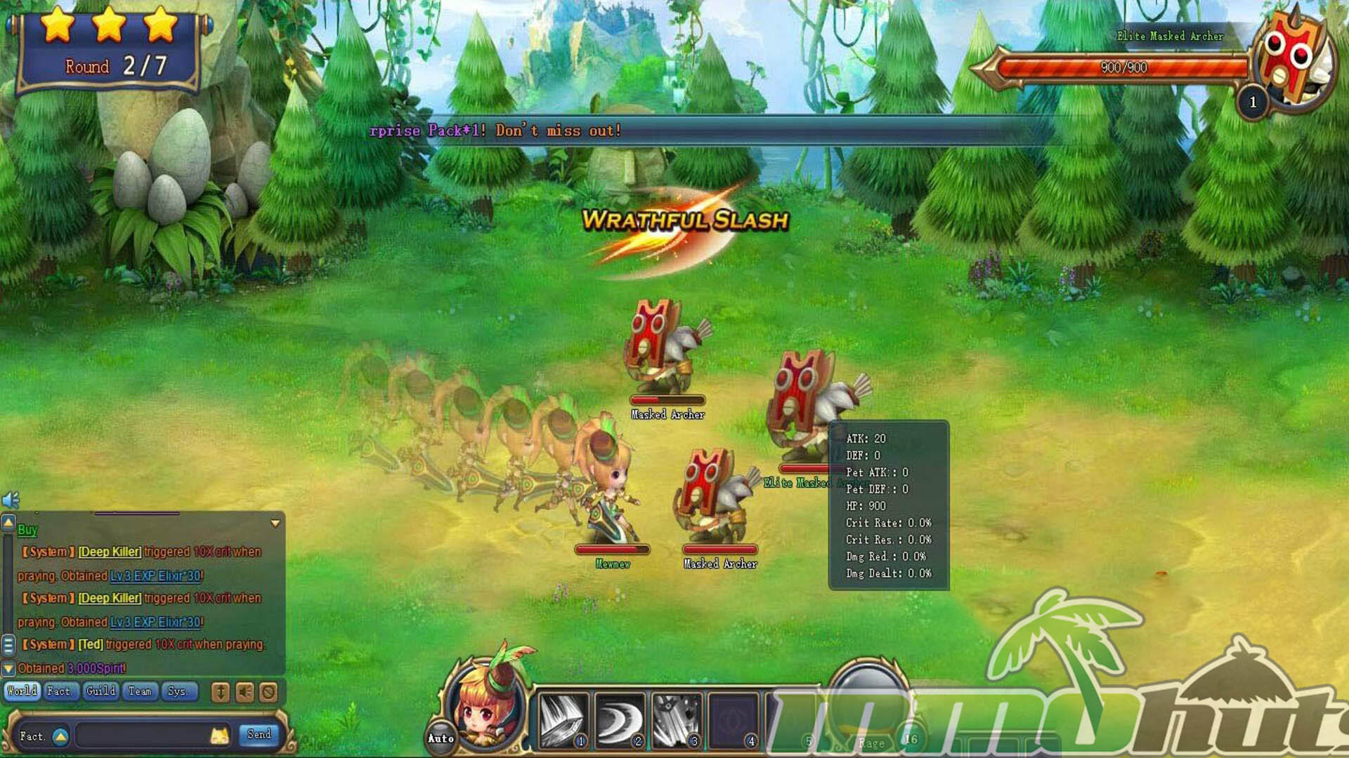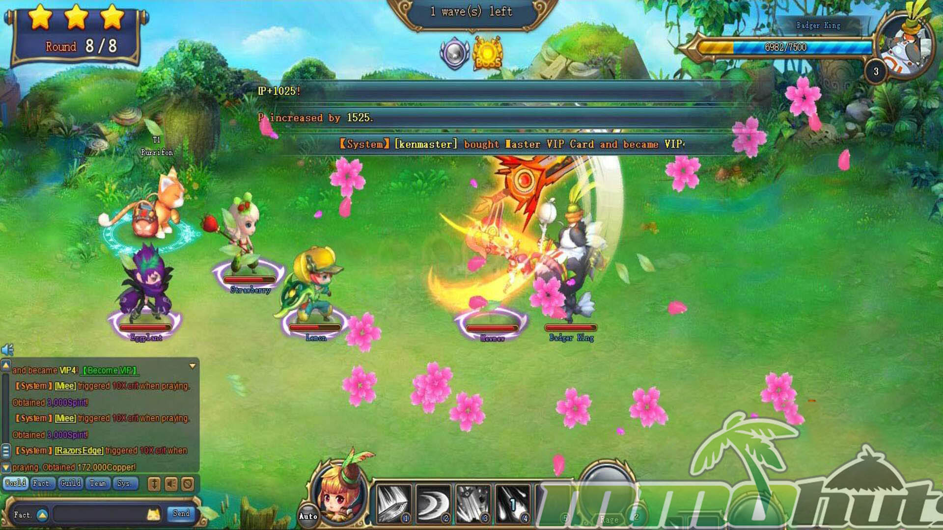 Fruit Warriors is a browser-based MMORPG and is intended to run well on a wide range of computers. In most cases, a modern browser should be enough for smooth play, and the settings allow you to reduce visual intensity by lowering spell effects and the number of monsters displayed. There is also a downloadable mini-client that provides experience bonuses.