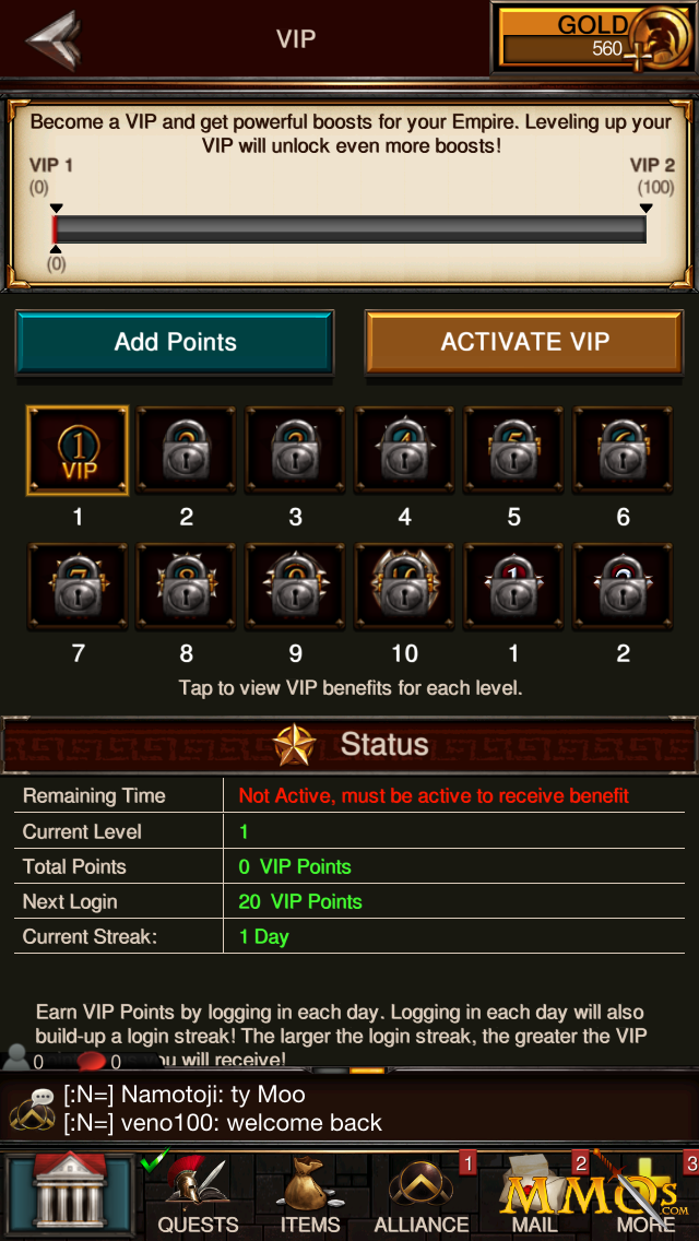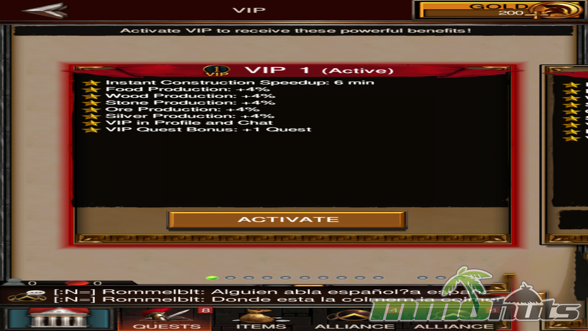 Monetization is integrated directly into the inventory and progression cadence. Players can buy VIP subscriptions that improve build speed and rewards, pick up Hero experience boosts, extend peace shields, and obtain crafting materials. While you do earn some premium Gold through questing, it is not enough to realistically match the pace of heavy spenders over time.