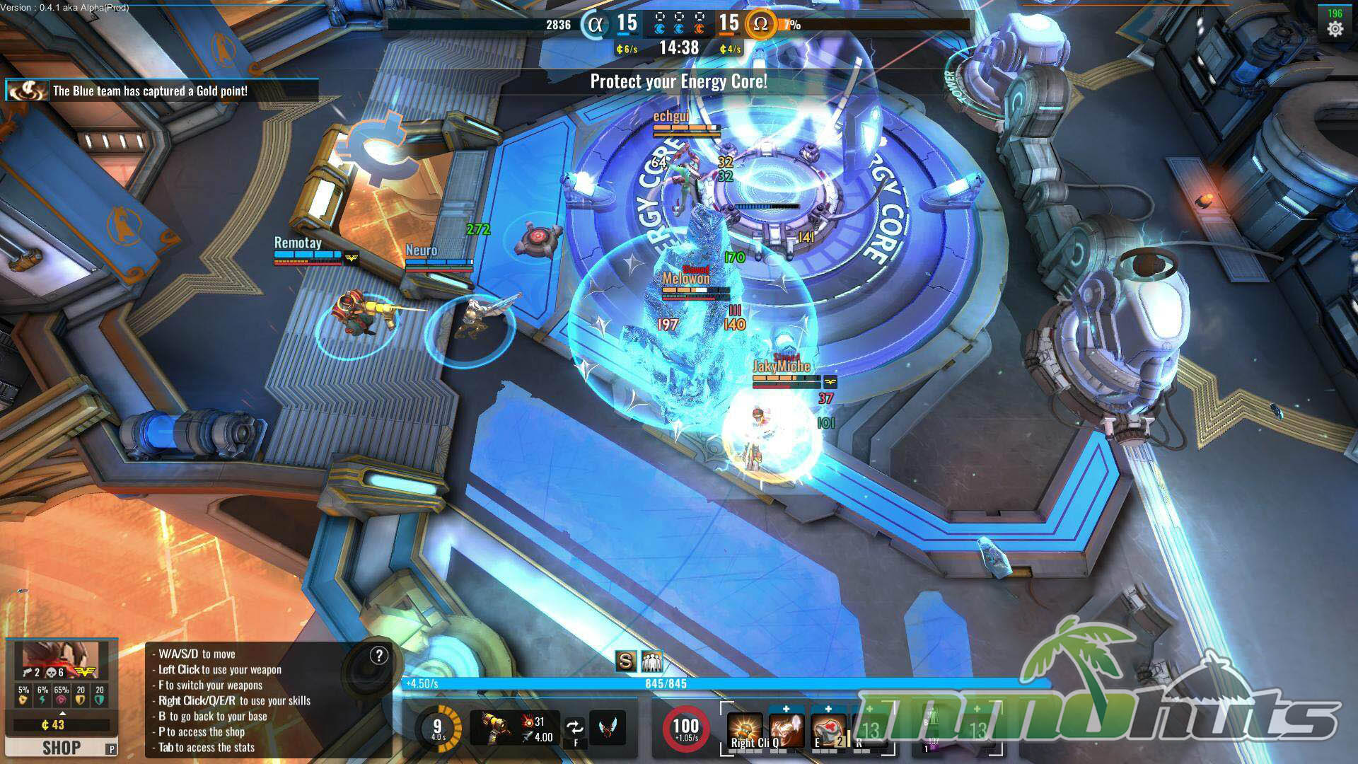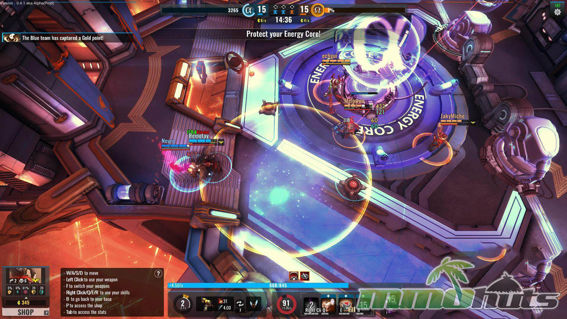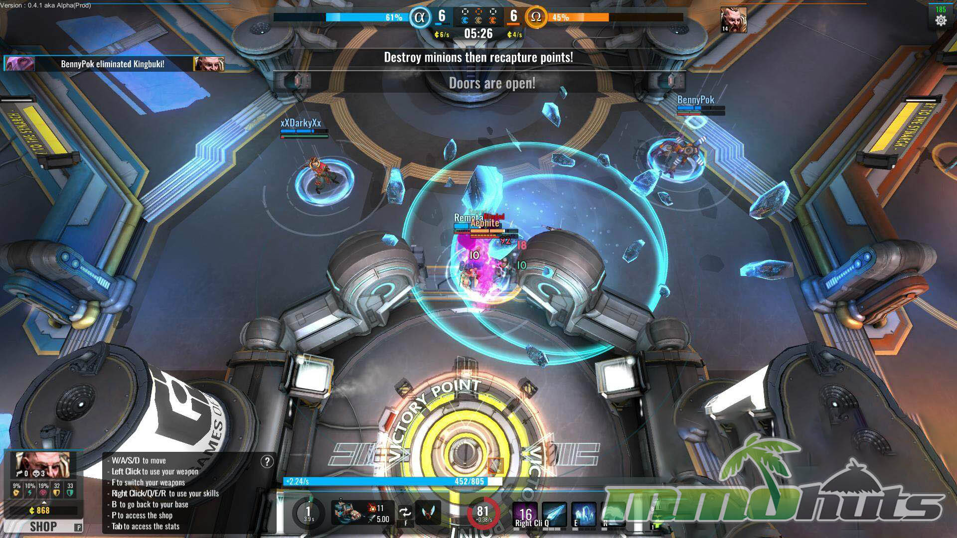 The core loop revolves around controlling capture points (referred to in-game as Capture Points or Victory Points depending on mode context) to weaken the defenses protecting the opposing team’s base. Securing these objectives lets your team bring down force fields and create a window to attack the enemy’s Energy Core. That objective-first structure keeps the pace moving and helps prevent matches from devolving into pure deathmatch, even though the combat itself is very brawl-forward.