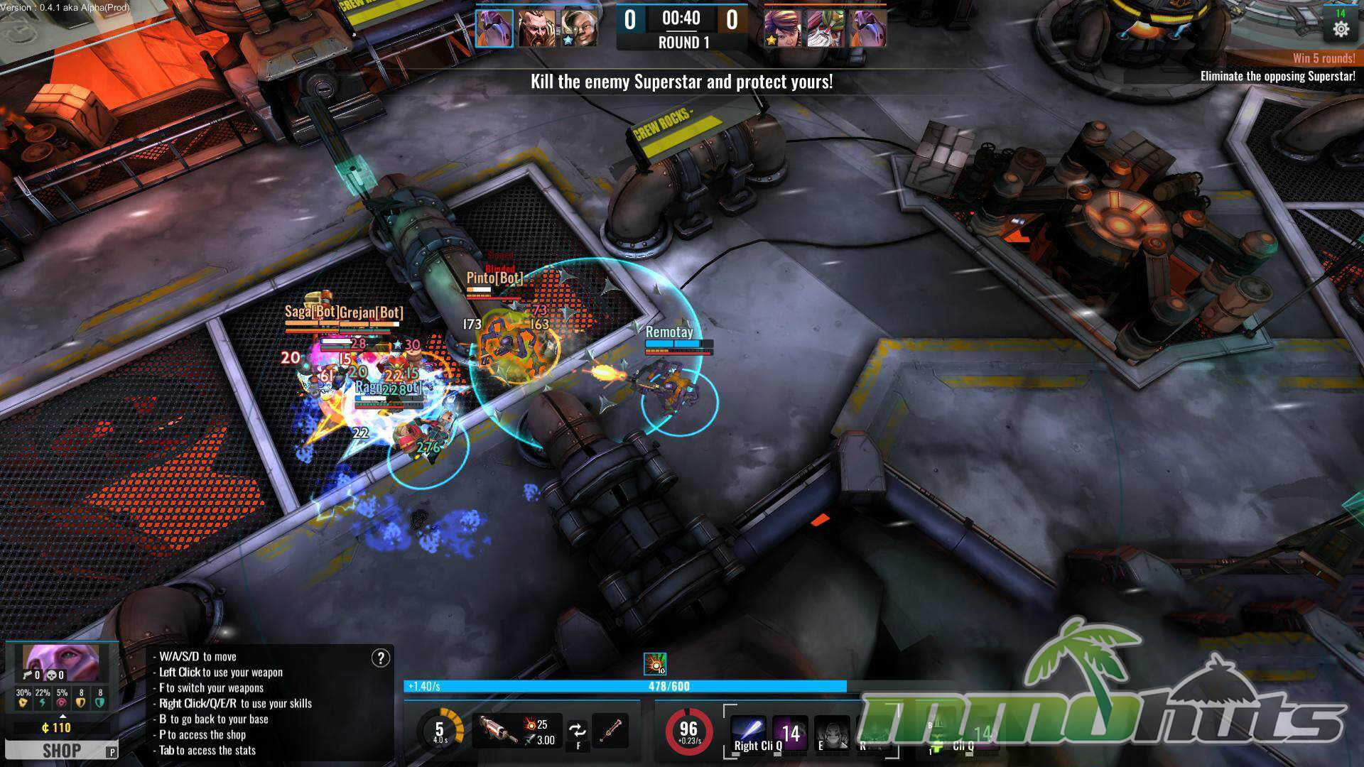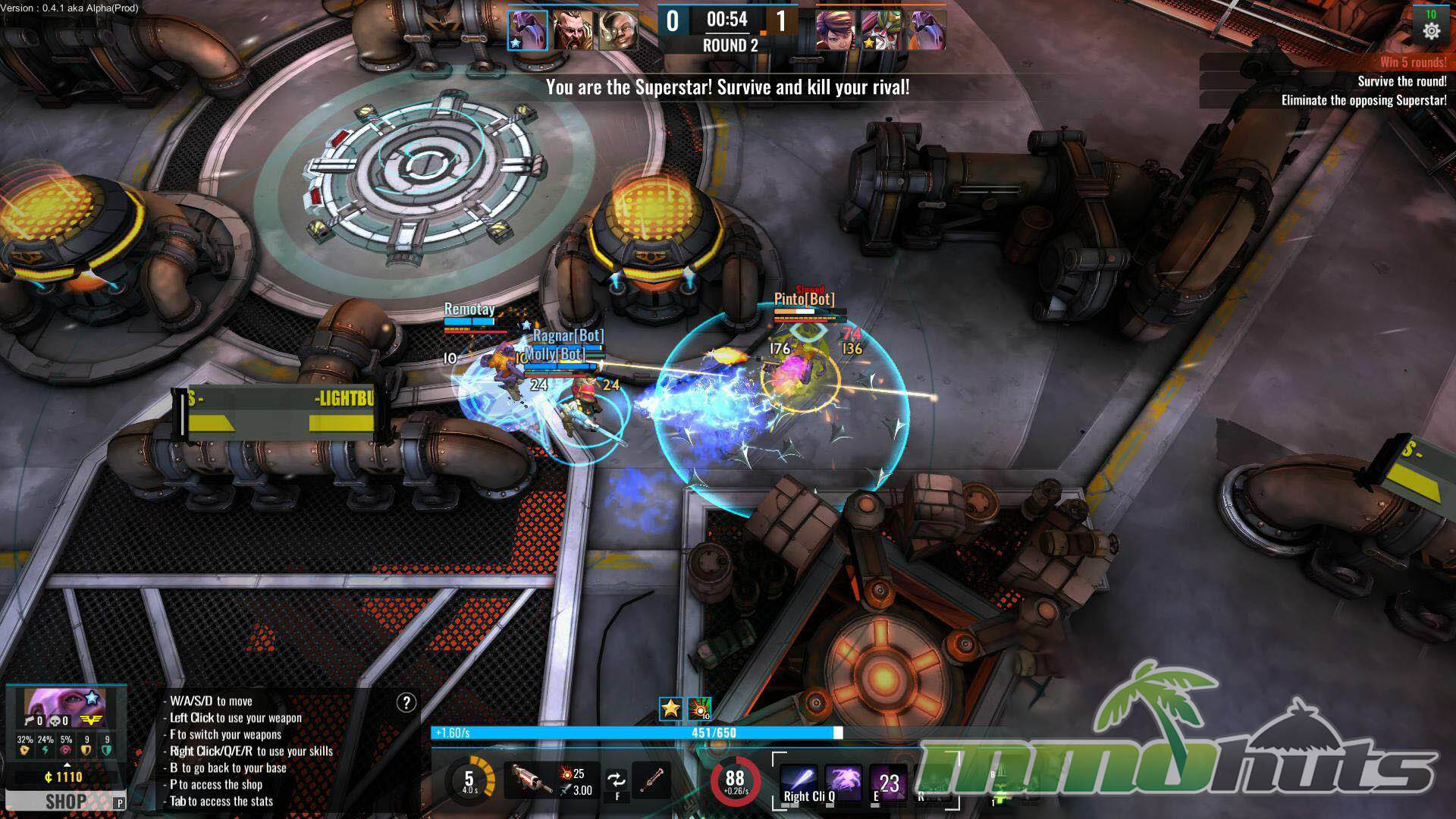 - Superstar – two teams of one, two, or three play a series of short rounds. Each round assigns a “superstar” on each team, and eliminating the enemy superstar earns a point. The first team to reach five round wins takes the match.
