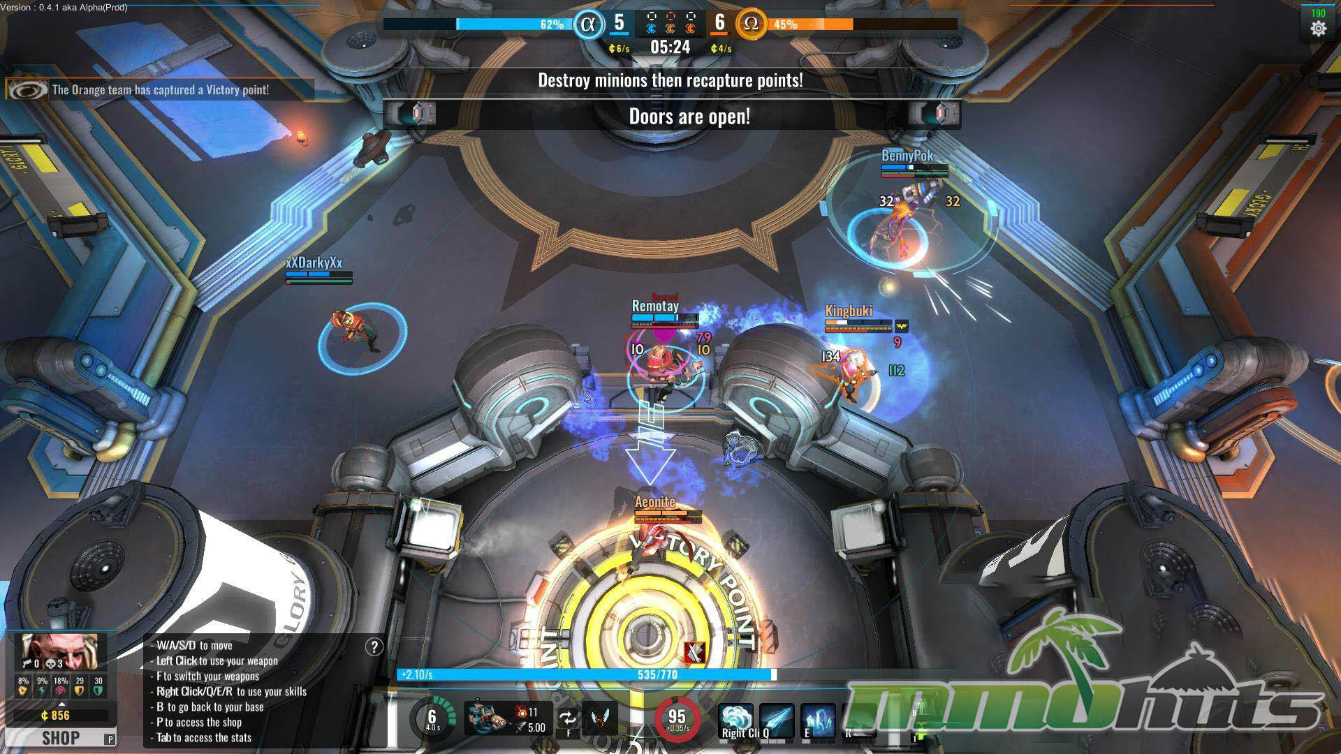 The core loop revolves around controlling capture points (referred to in-game as Capture Points or Victory Points depending on mode context) to weaken the defenses protecting the opposing team’s base. Securing these objectives lets your team bring down force fields and create a window to attack the enemy’s Energy Core. That objective-first structure keeps the pace moving and helps prevent matches from devolving into pure deathmatch, even though the combat itself is very brawl-forward.