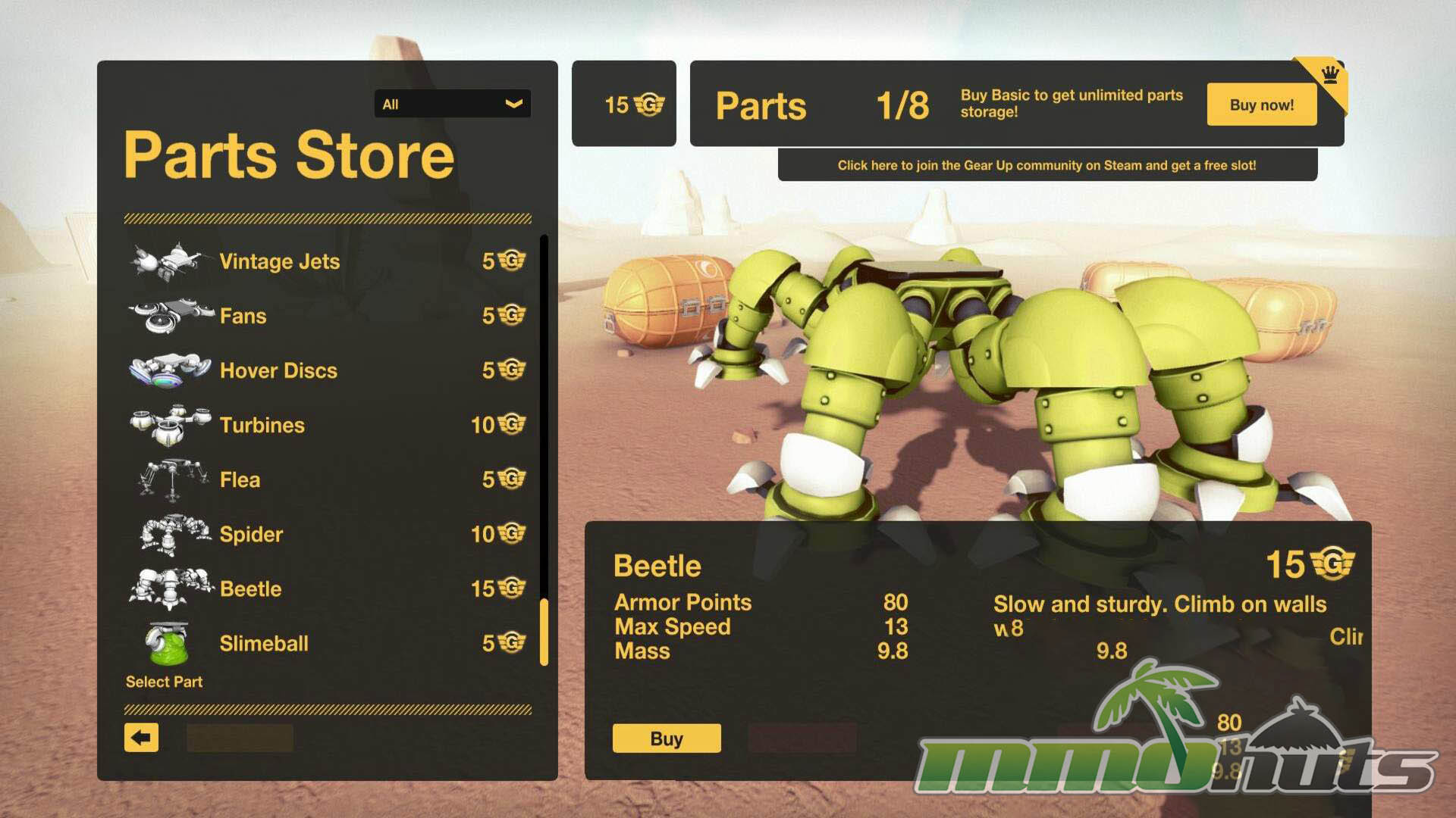 To address that, the game offers paid options like the $10 Basic pack for additional space, which can feel reasonable if you plan to stick with the game and experiment often. There is also a $20 Premium edition that unlocks all parts immediately. That option is convenient for players who want to skip the unlock loop, though it also removes some of the long-term chase that keeps many free-to-play games engaging. Importantly, it is still possible to earn everything through play, and matches generally do not feel like they are decided purely by who has the biggest collection.