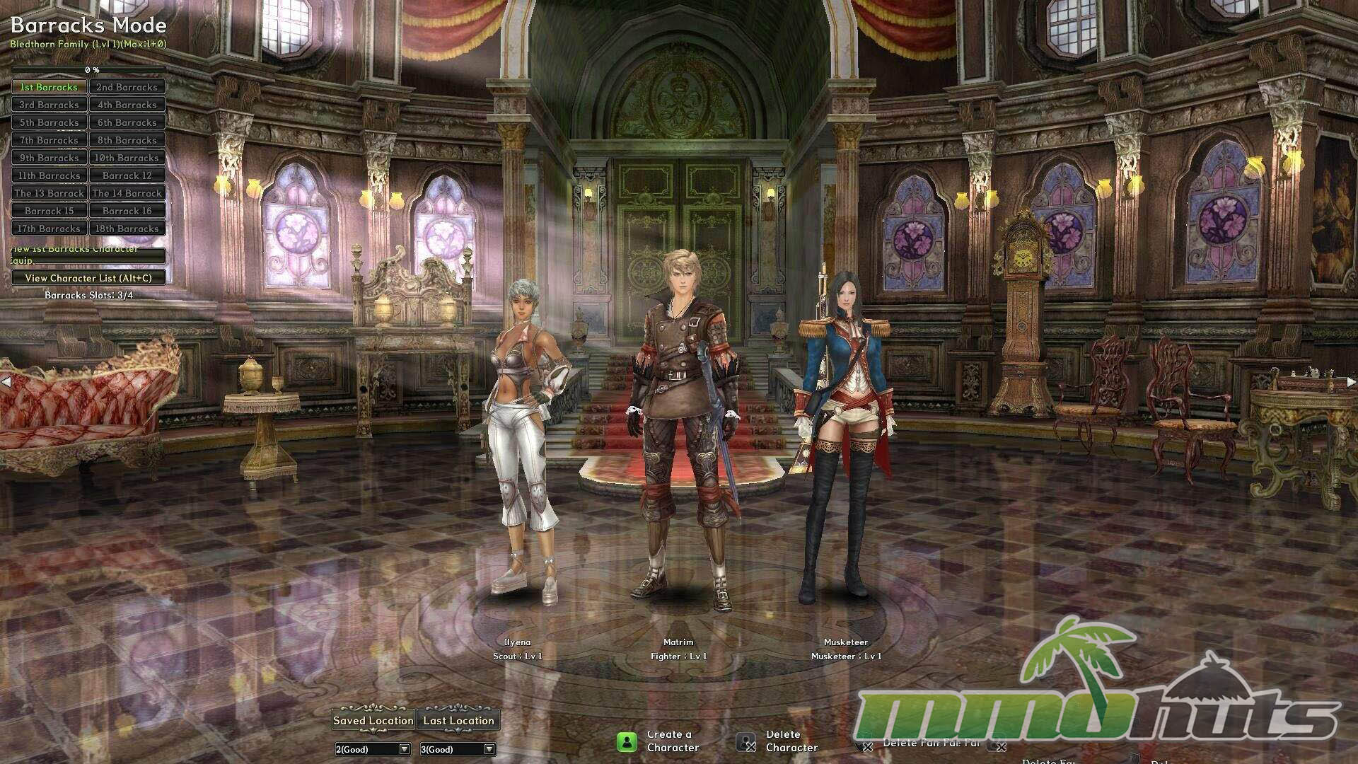 Your off-field characters live in the barracks, which serves as the game’s management screen and home base. This is where you review your roster, set up your active three-person team, create additional characters, and travel to selected locations. It is also the first place you load into on login, making it a constant part of the play loop.