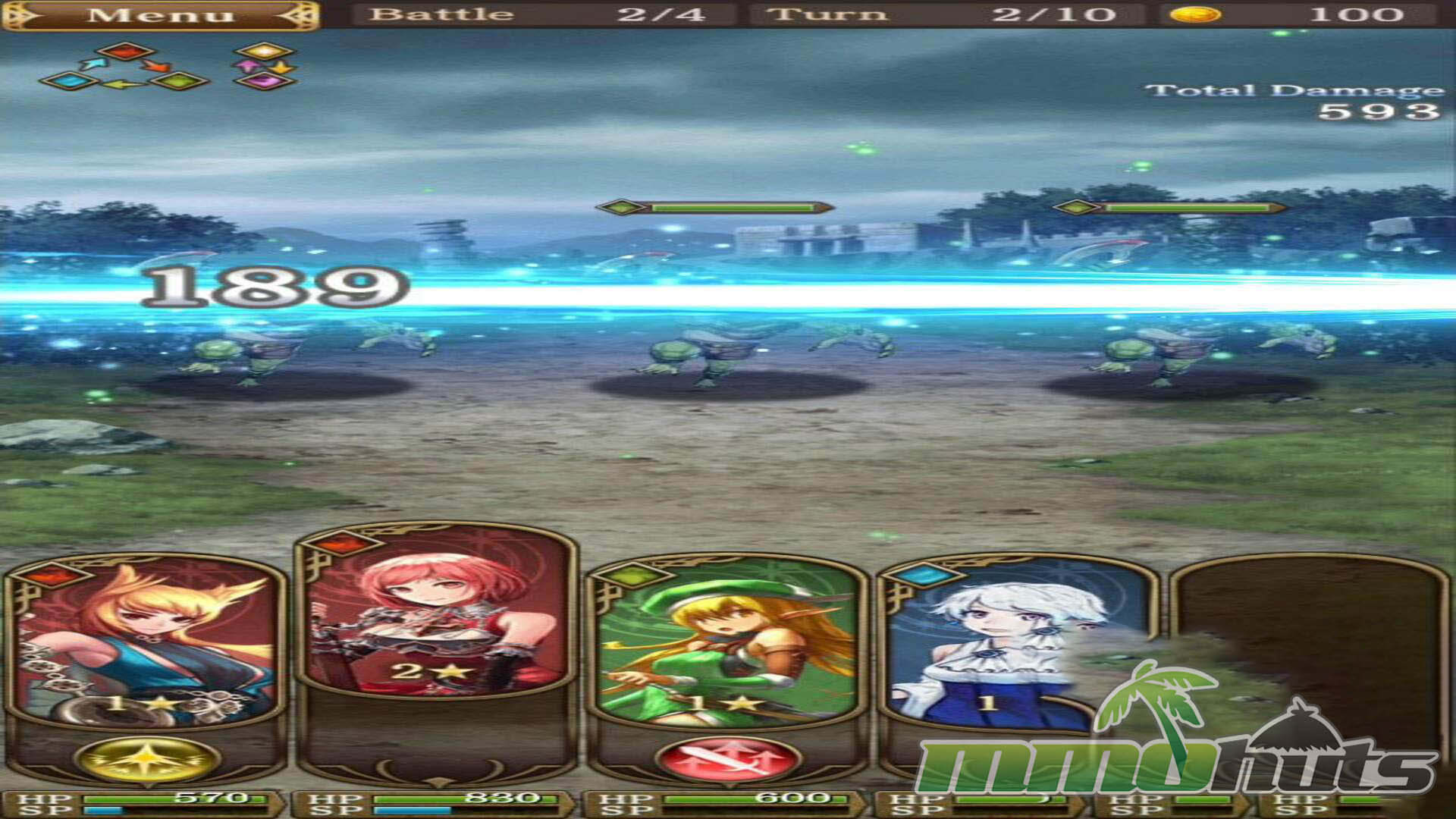 Combat encounters are organized into waves. Standard stages run through three waves, typically culminating in a boss in the final wave, while the main boss stage at the end of a map stretches to four waves. Rewards include gold, experience, occasional card pickups, and materials used for crafting and upgrades. Visually, the game is fully 2D, but monster animation is surprisingly lively for the format, and the JRPG-like music and flashy effects help battles feel punchy rather than flat.